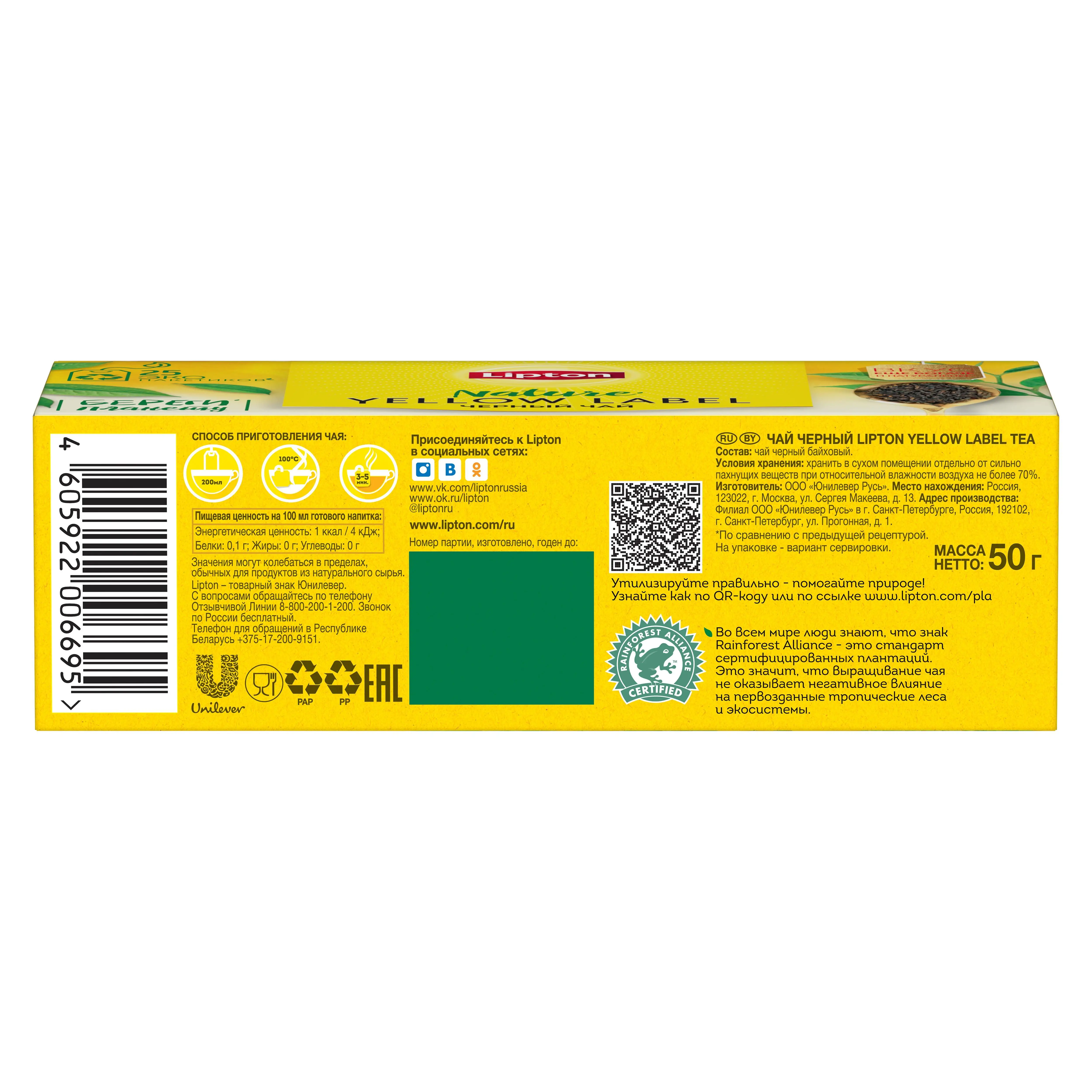 Чай черный Lipton Yellow Label, 25 пакетиков