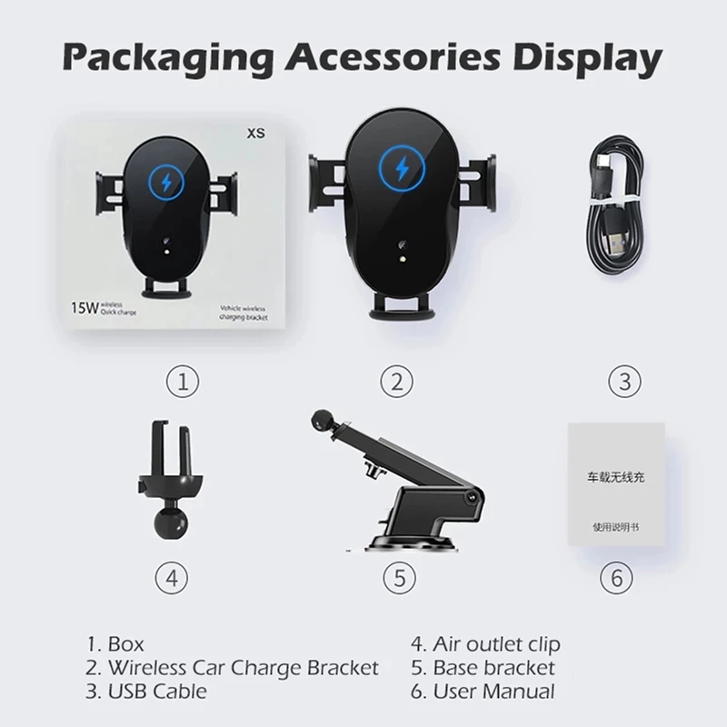 Автомобильное беспроводное зарядное устройство Qi 15 Вт для iPhone 11 XS XR X 7 8, быстрая зарядка, автоматический зажим, быстрая зарядка, автомобильный держатель для телефона, подставка