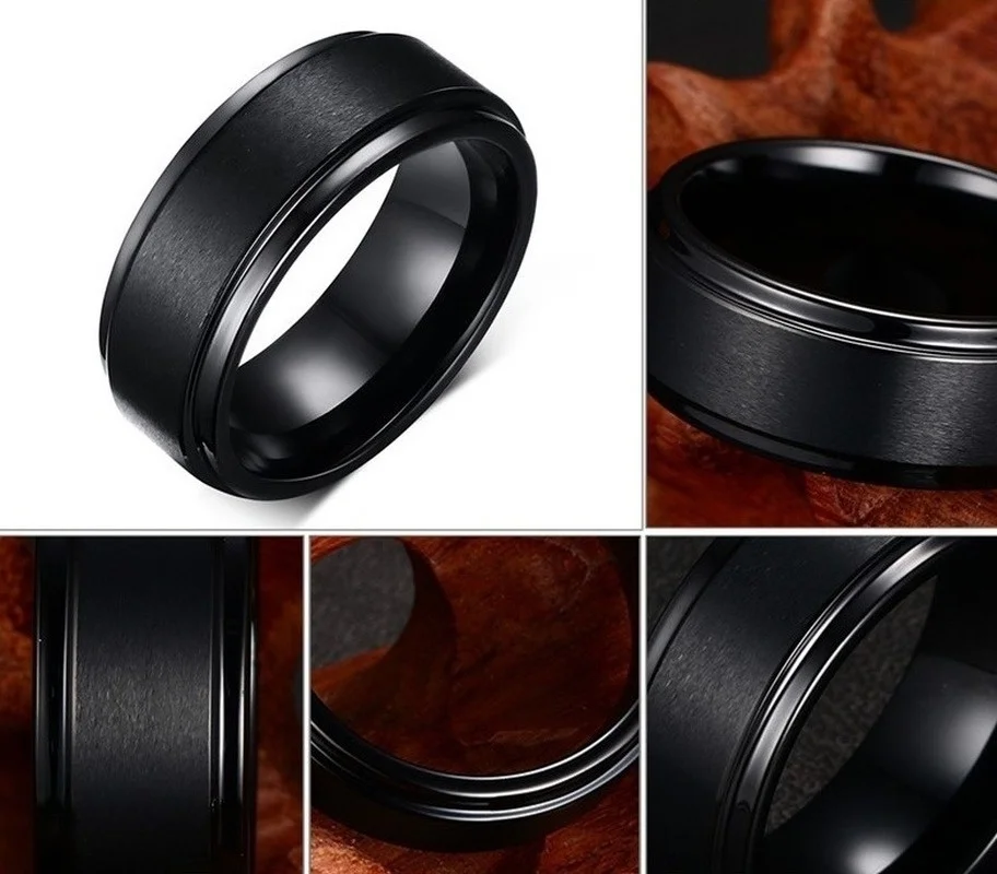 Классические модные черные Матовые одинарные кольца, закрытые кольца для мужчин и женщин