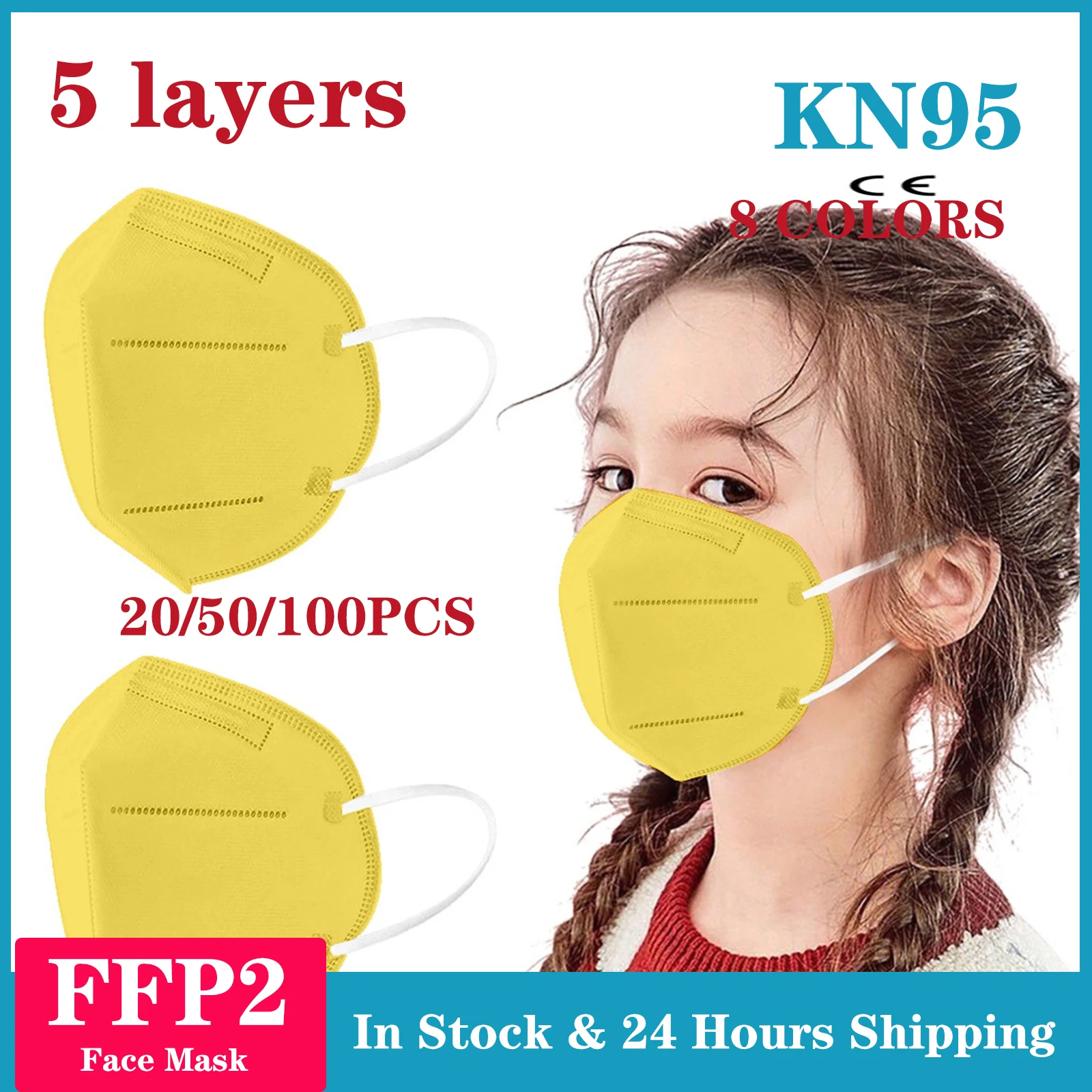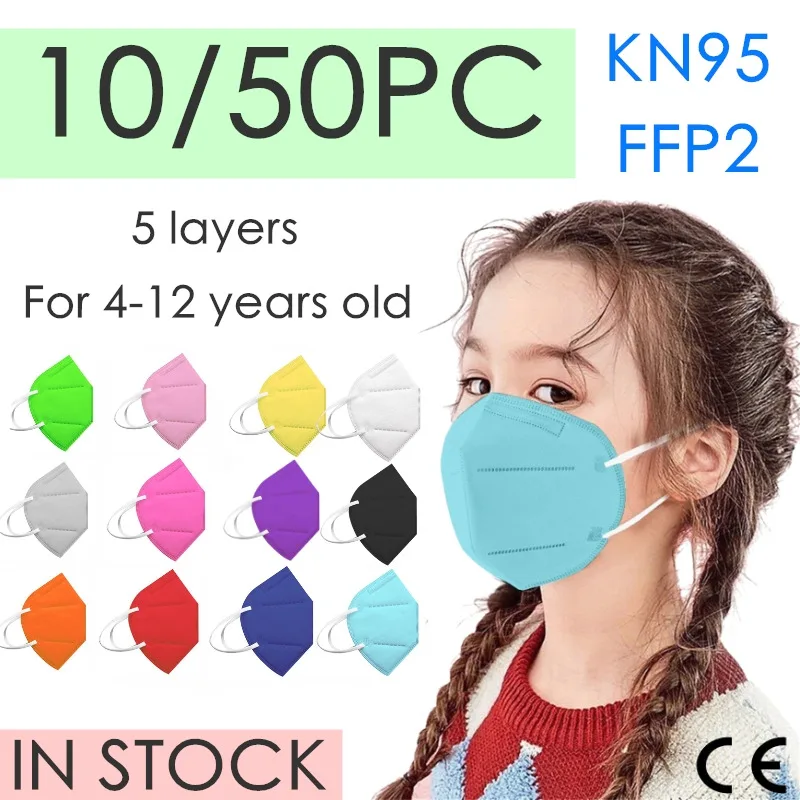 10-50 шт. 12 цветов FFP2 детская маска N95 CE утвержденный 5 слоев ...