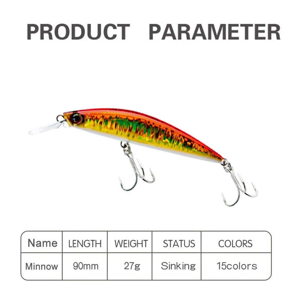 Новинка, размеры от 90 мм 27 гр катушка для ловли Тонущая приманка искусственная приманка гольян 3D воблер с глазками заброса VIB карандаш бас рыболовные снасти для ловли щуки