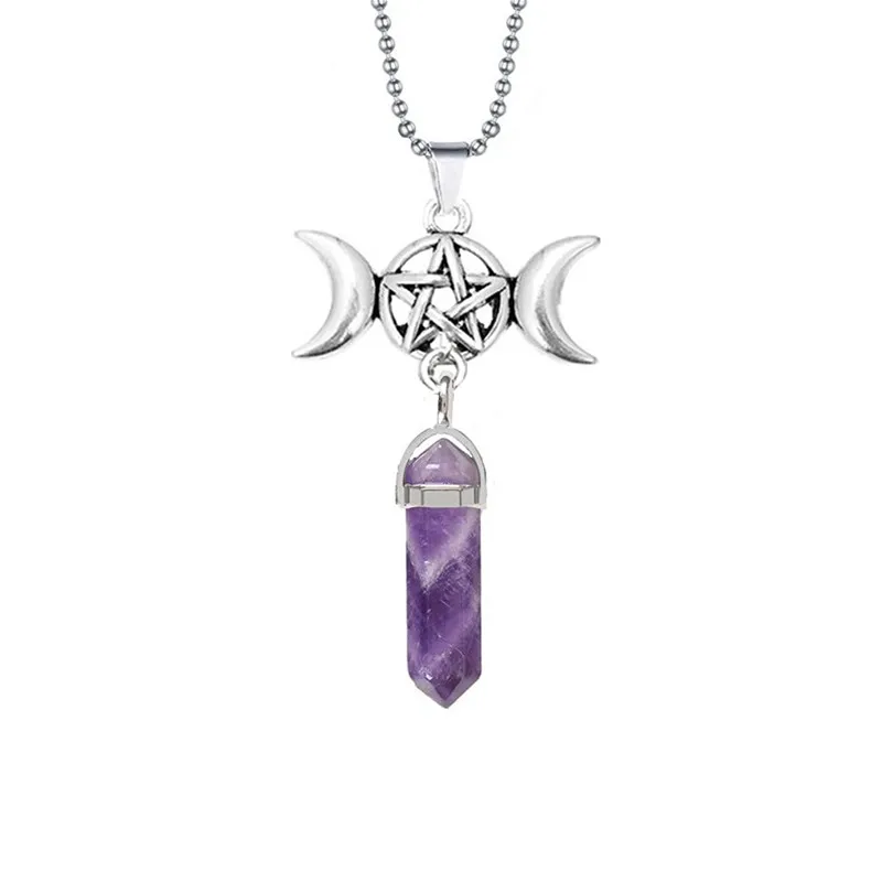 Ожерелье с шестигранным заостренным кулоном из кварца в стиле богини тройной Луны, чакра рейки, пентаграмма, гадание, амулет Викки, защитное колье