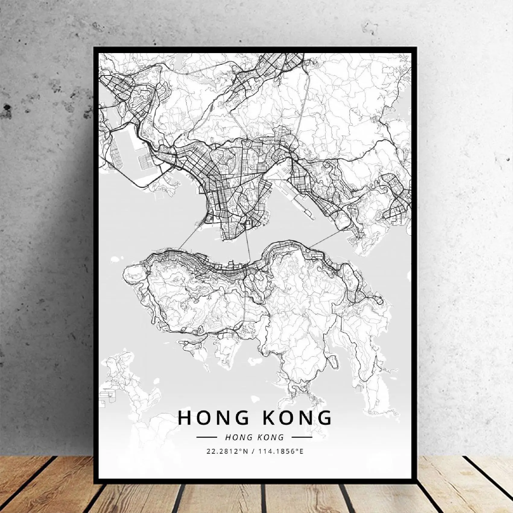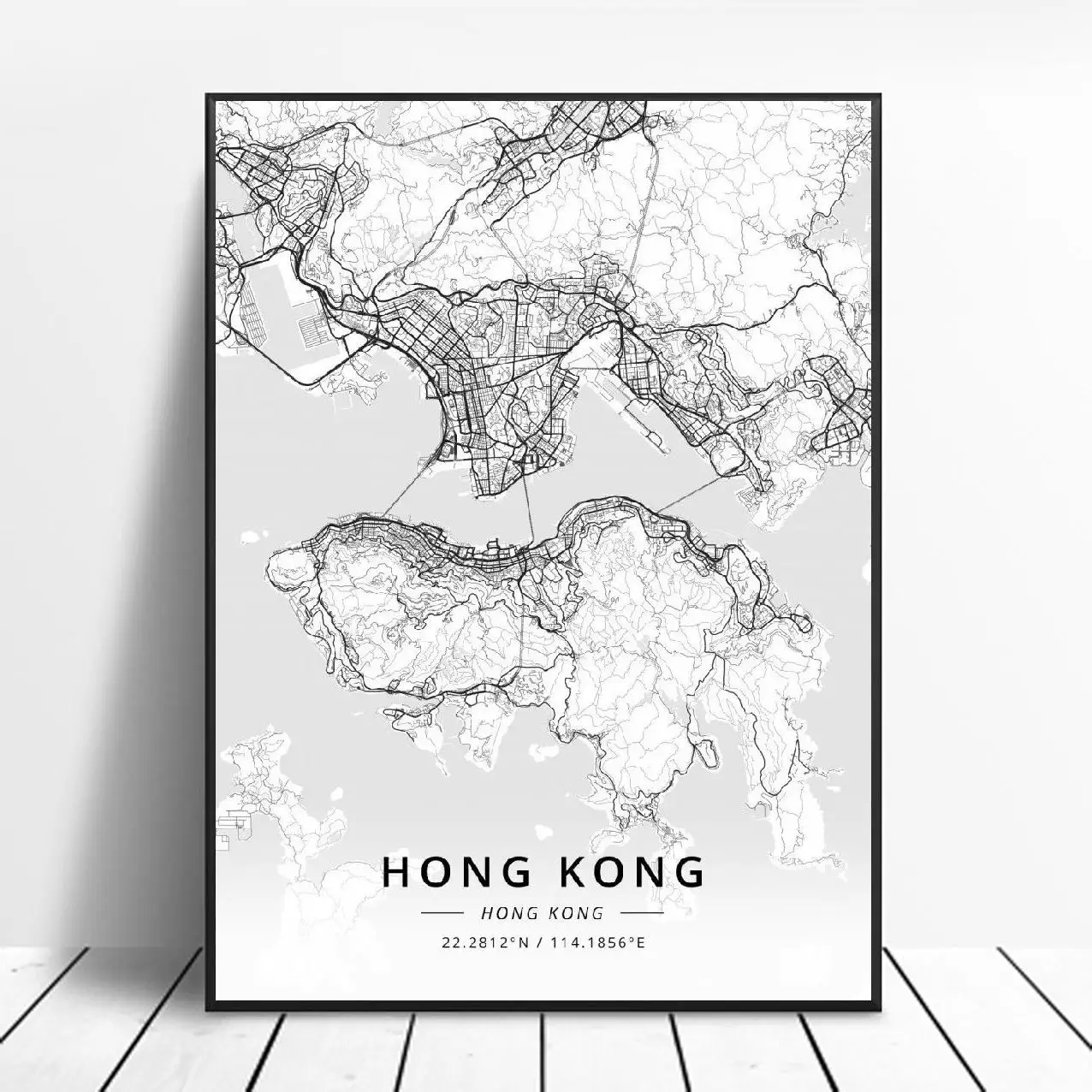 Черно-белый холщовый постер с принтом карты города стальбум, Соврем...