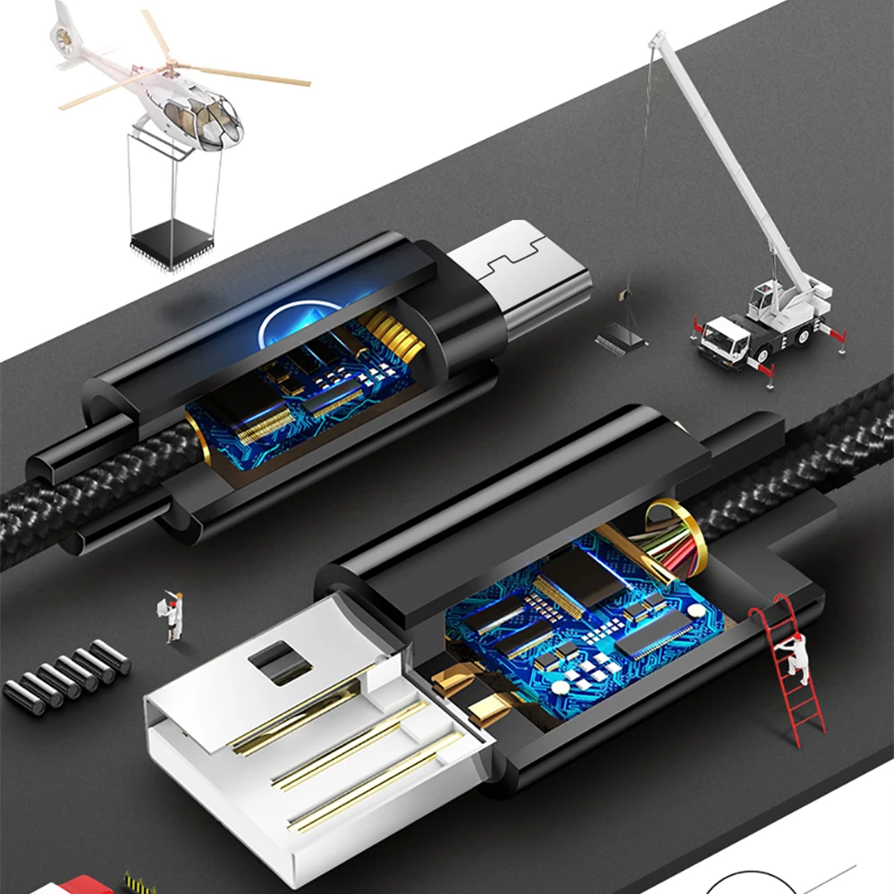 Micro USB кабель 1 м2 м3 м Быстрая зарядка USB кабель для передачи ...