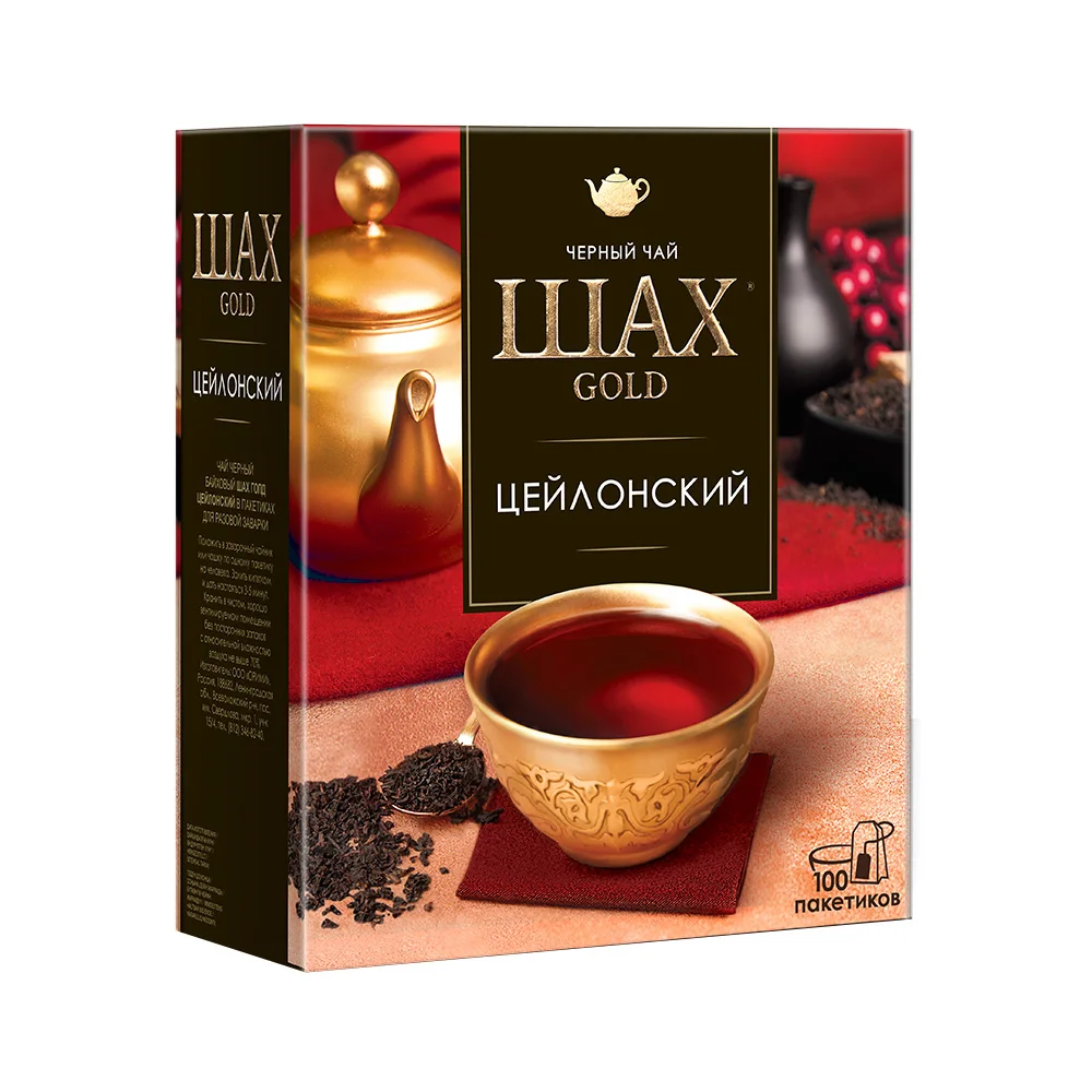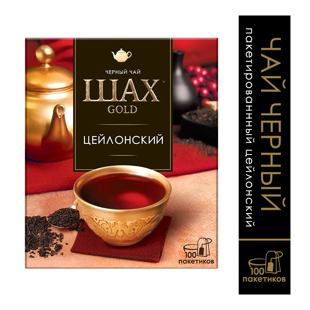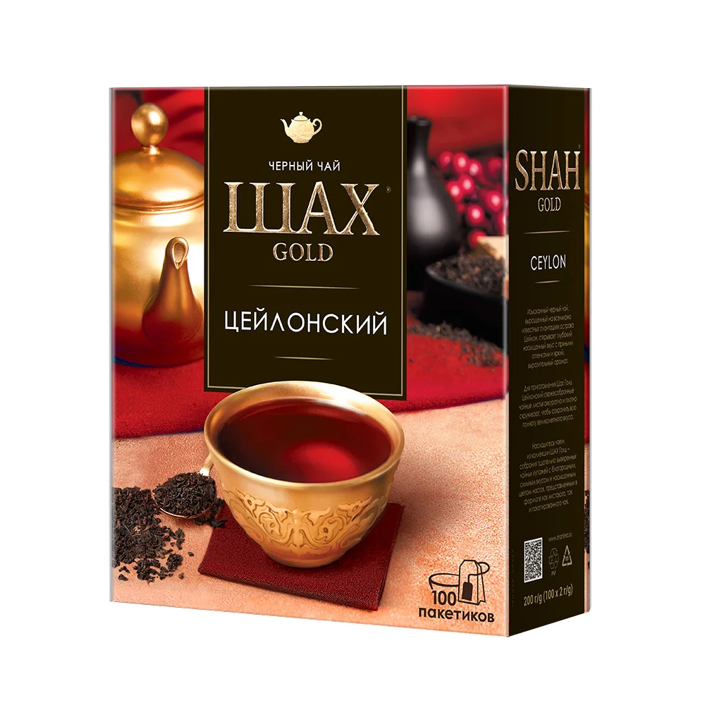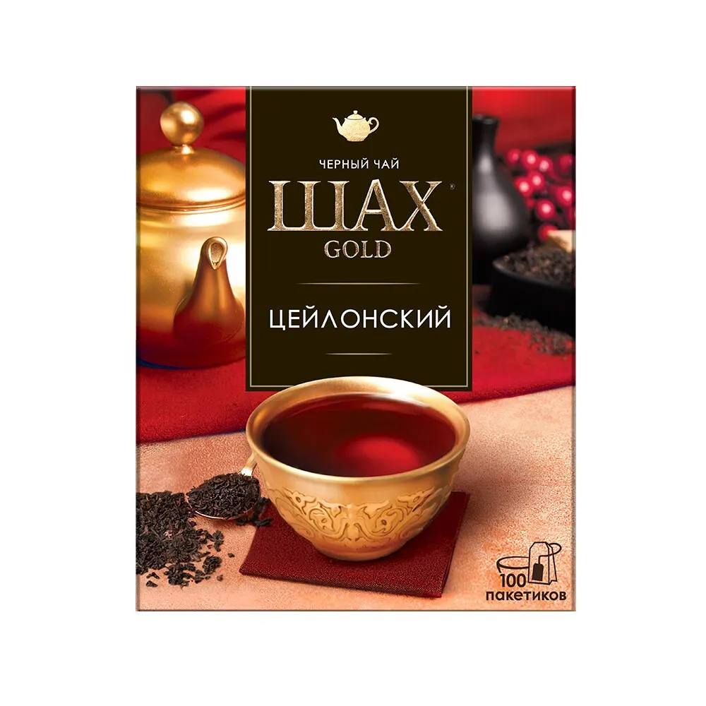 Черный чай в пакетиках Шах Голд Цейлонский, 100 шт