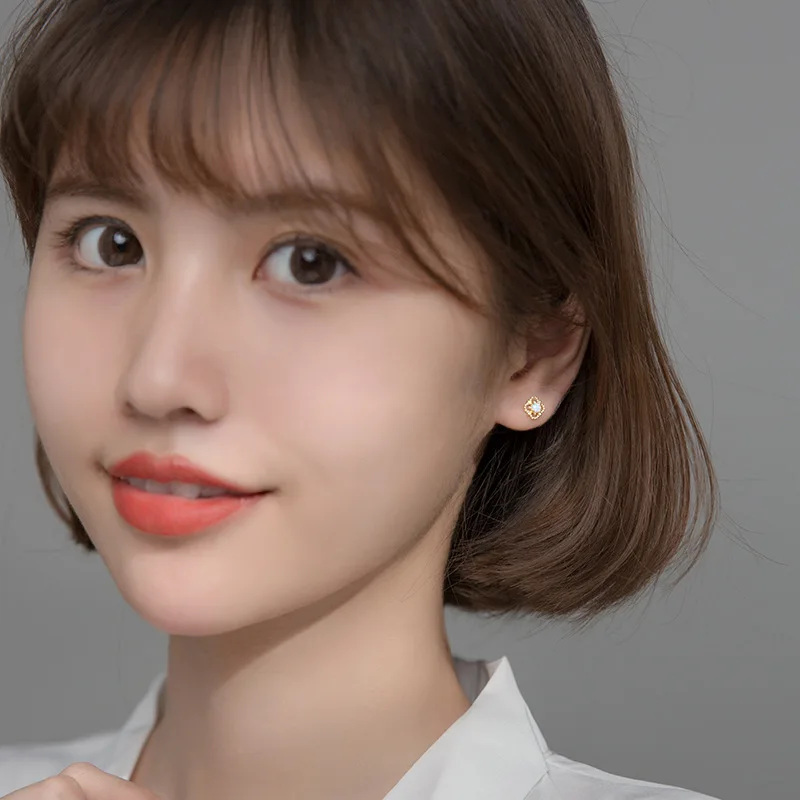 Серьги-гвоздики женские из серебра 925 пробы с фианитами и опалом