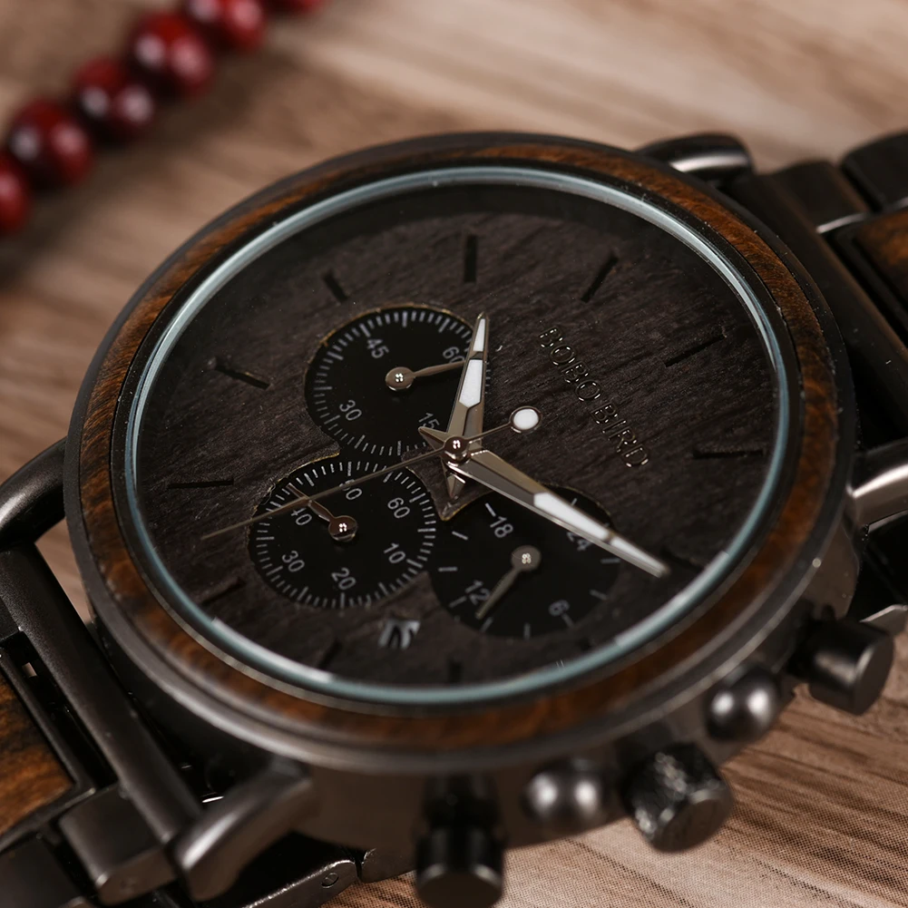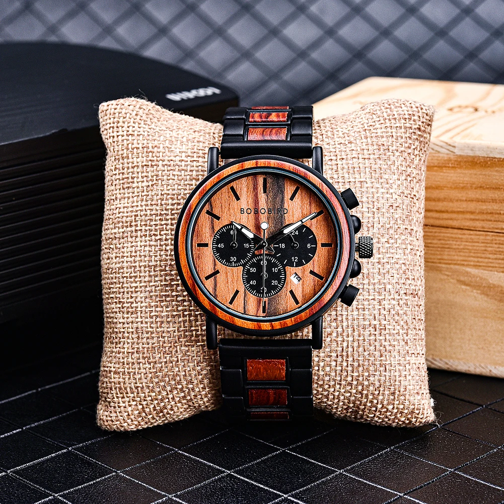 Часы наручные BOBO BIRD мужские деревянные, роскошные стильные водонепроницаемые с хронографом, из нержавеющей стали, отличный подарок