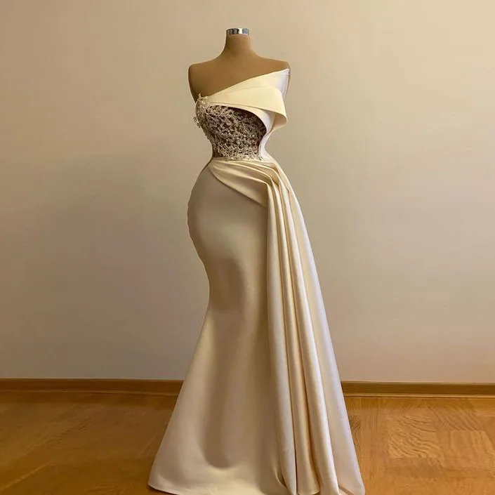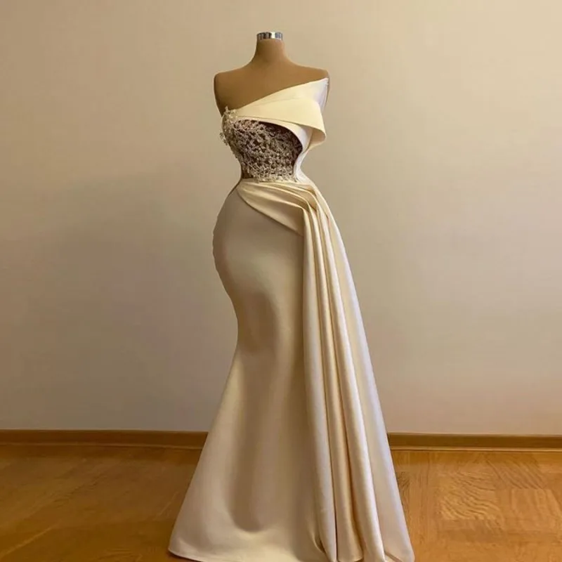 Элегантное Атласное Вечернее платье с рюшами и юбкой-годе, светильник кое платье цвета шампанского без рукавов для выпускного вечера, кружевное и атласное платье на молнии сзади, вечернее платье