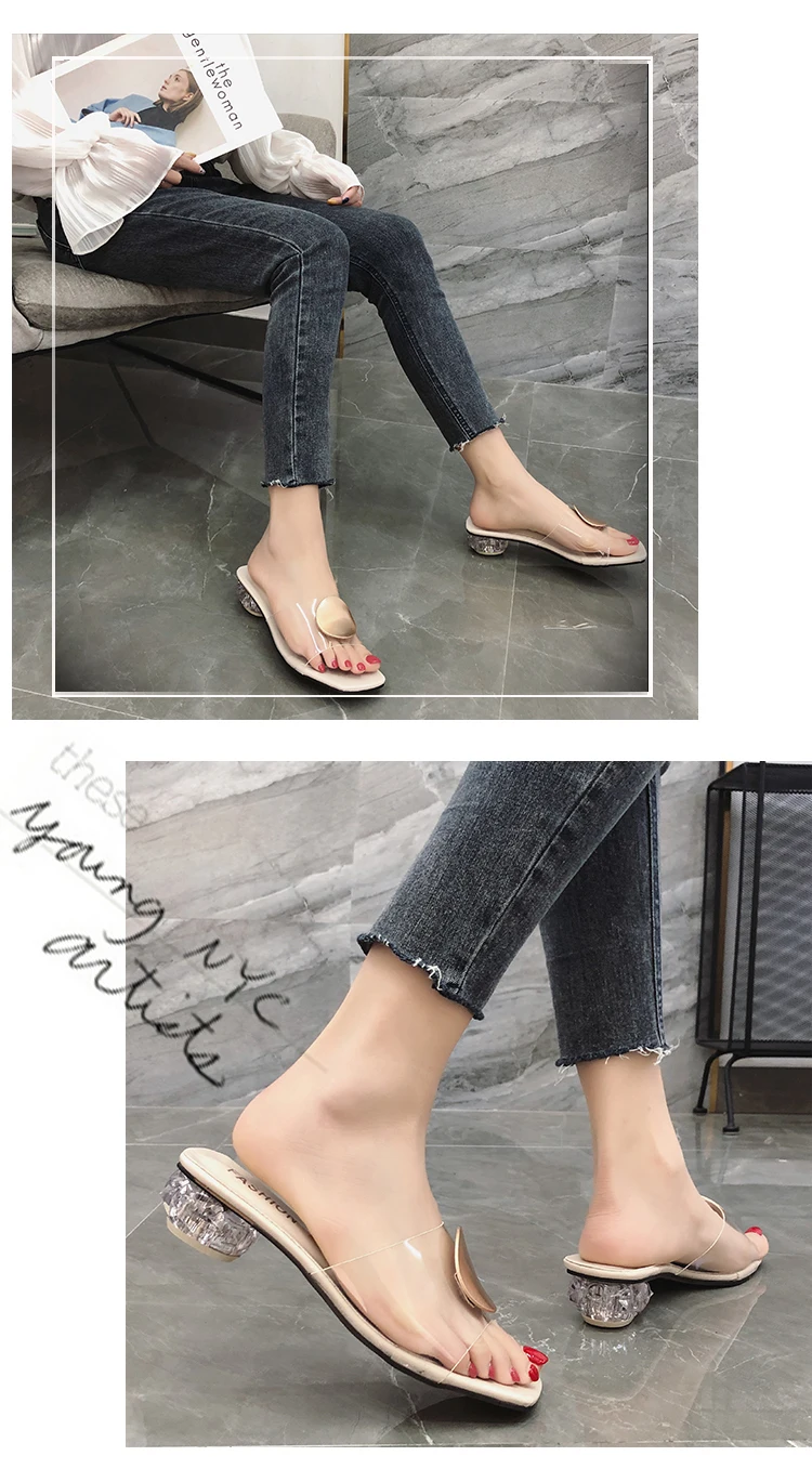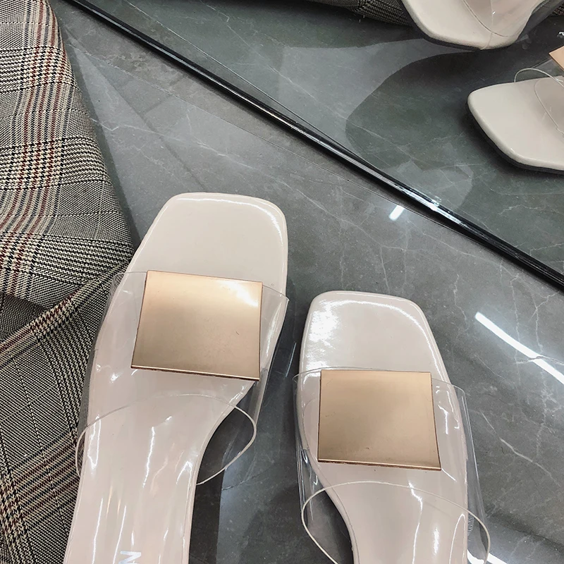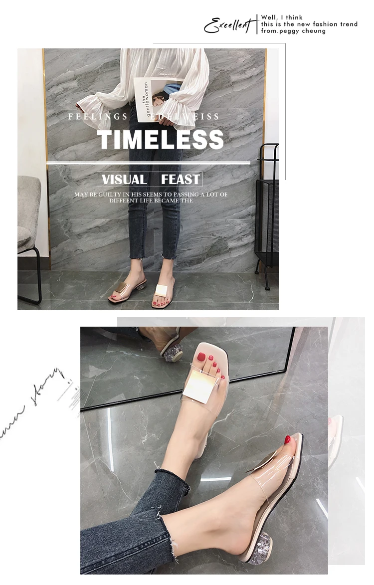 Пикантные туфли на высоком каблуке элегантные тапочки новая женская летняя обувь, женские, металлические, с пряжкой и со вставкой из прозрачного пластика Обувь на низком квадратном каблуке Босоножки с открытой пяткой; Цвет: женский ремень