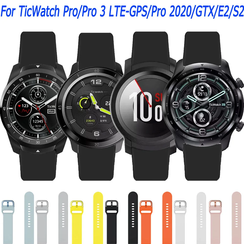 Ремешок 22 мм для TicWatch ProPro 3 GPSLTEPro 2020GTXE2S2, спортивный силиконовый смарт-браслет, ремешок для часов с быстрой установкой