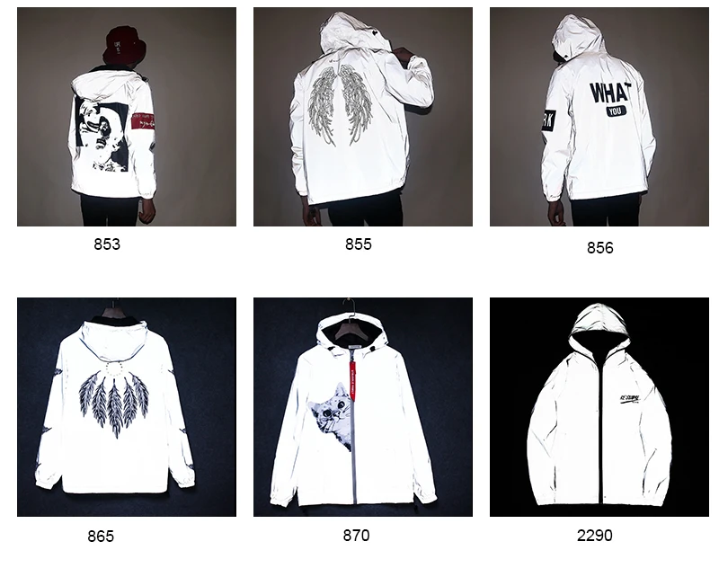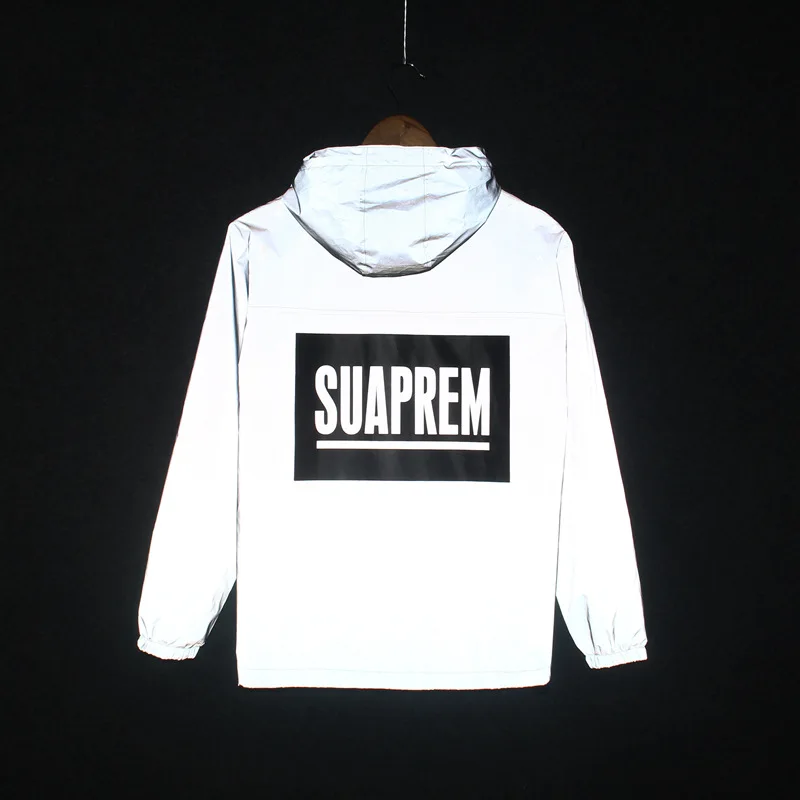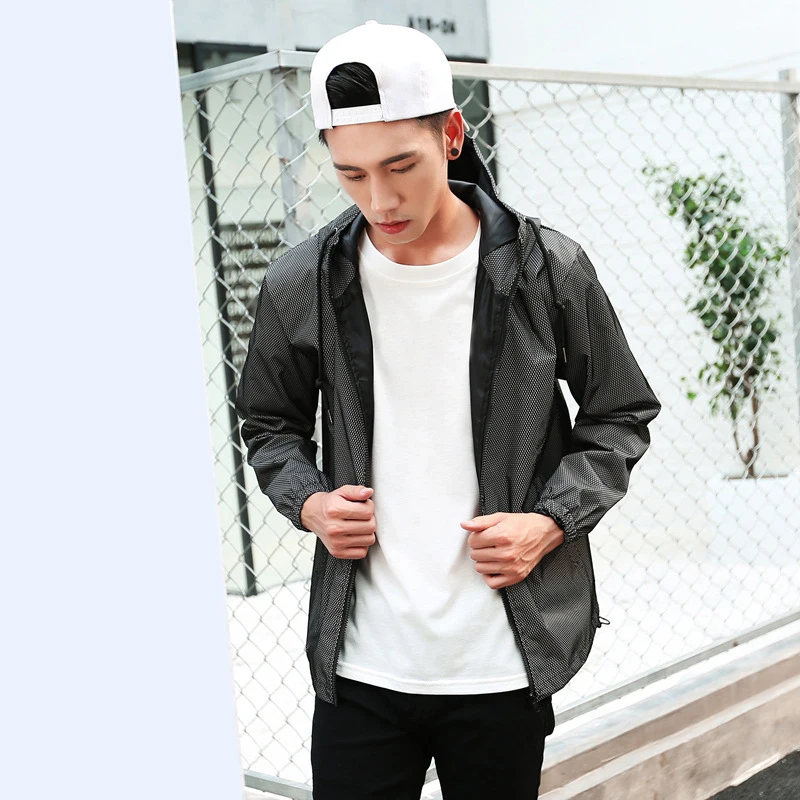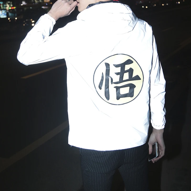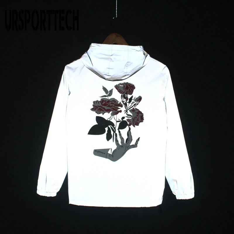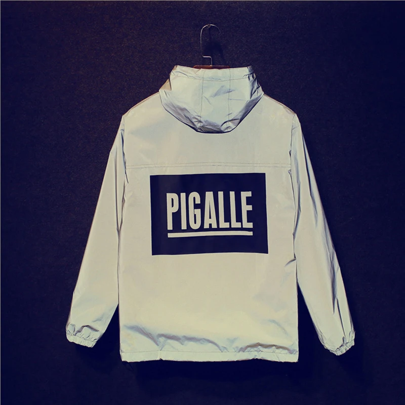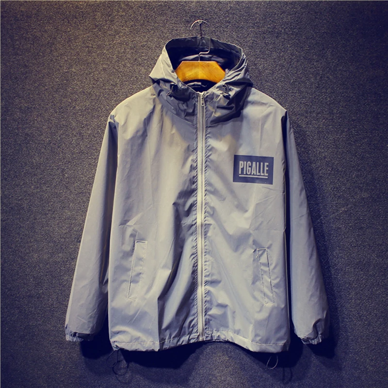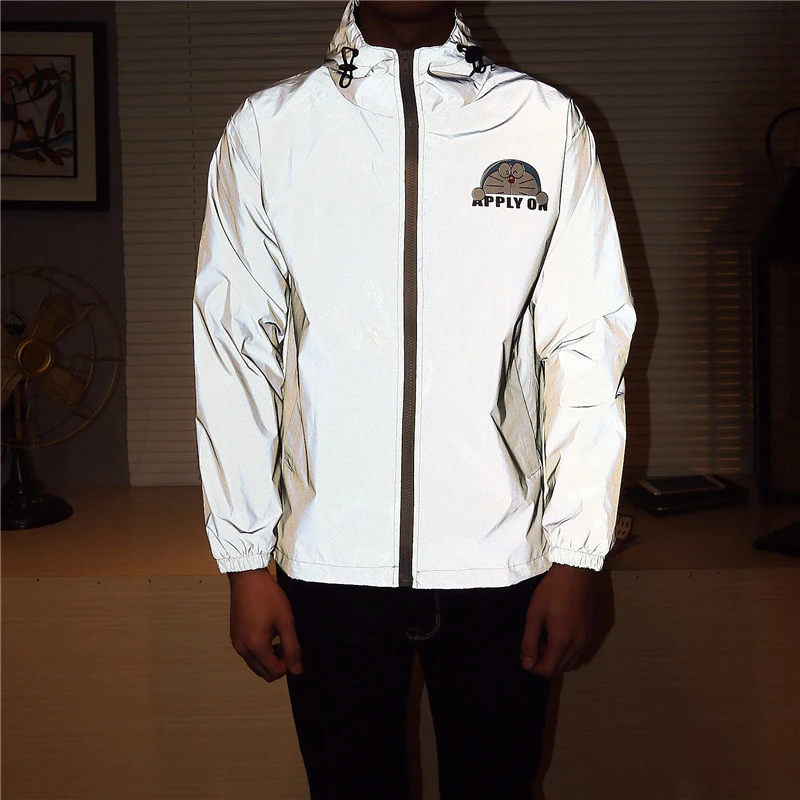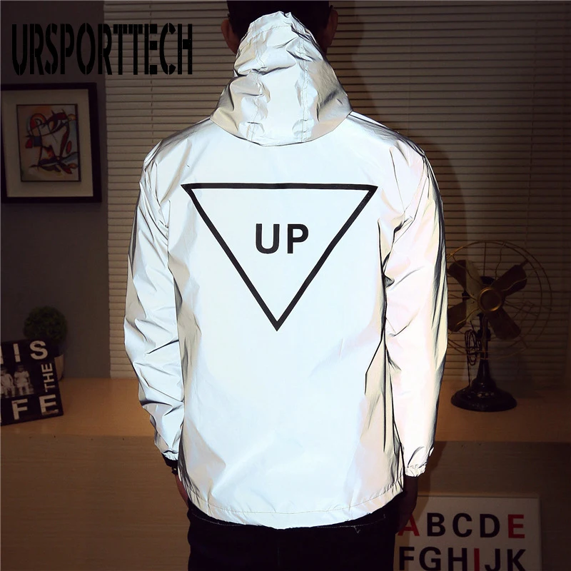 Светоотражающая куртка для мужчин и женщин, популярная мужская куртка, ветровка в стиле хип-хоп, Мужское пальто с капюшоном, уличная одежда, блестящая куртка для пар
