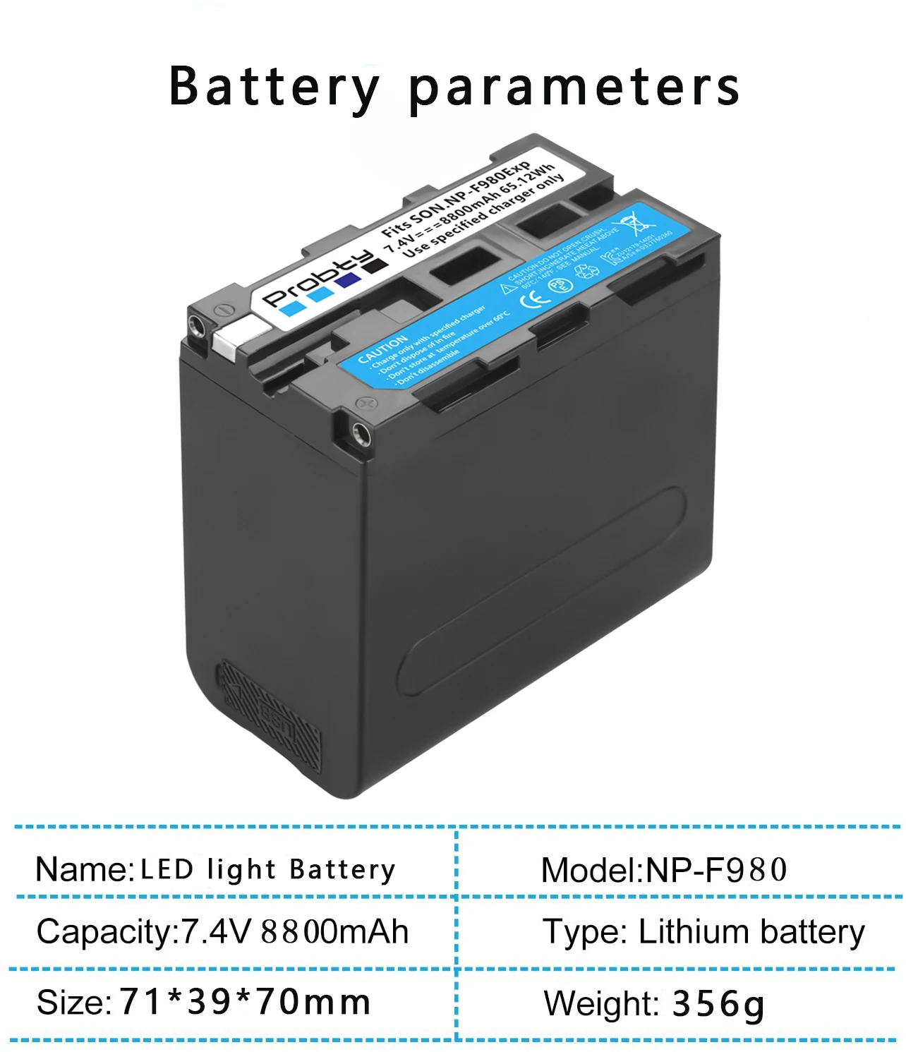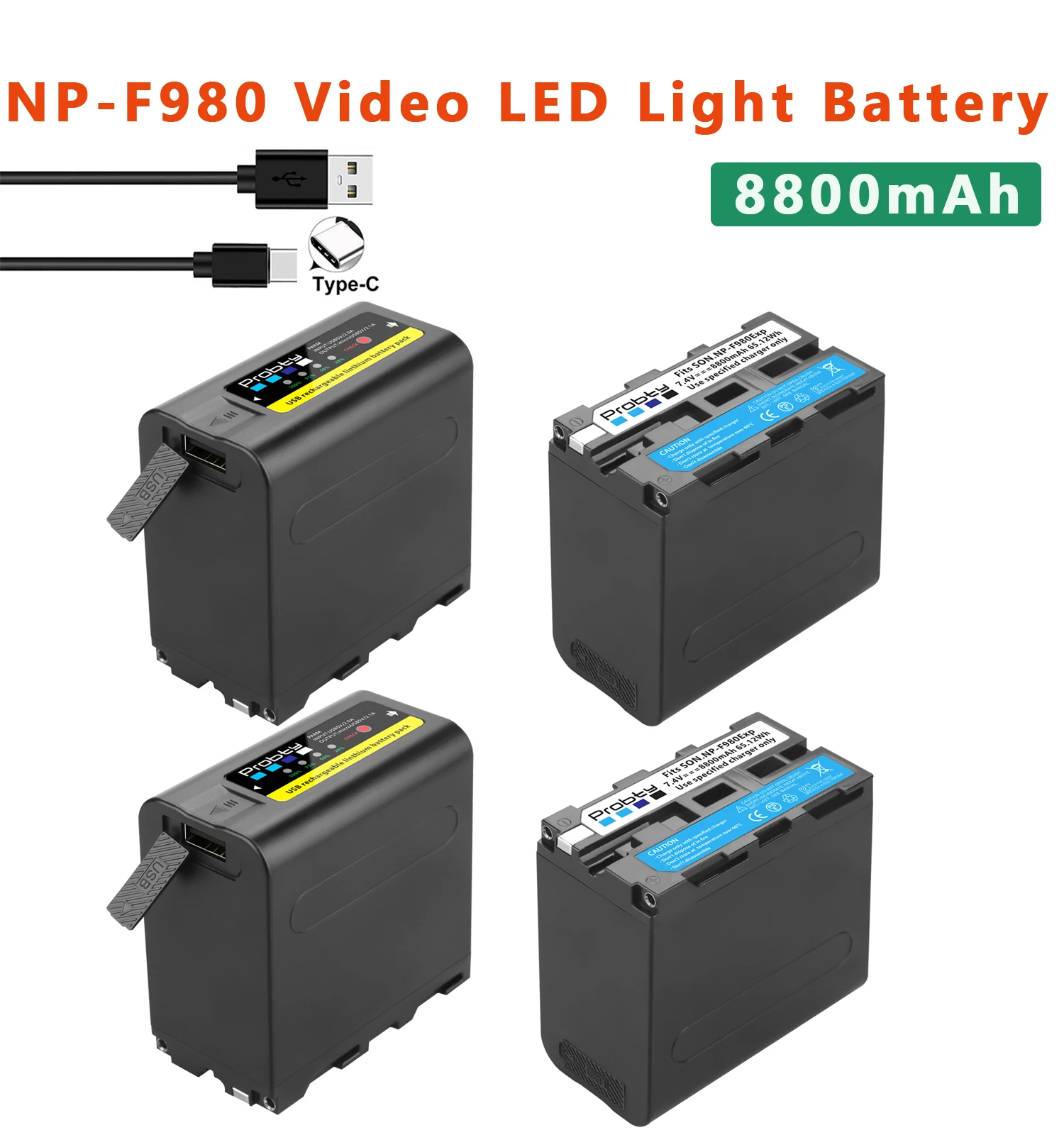 4 шт. NP-F970 NP-F980 8800 мАч с Светодиодный индикатор питания лампа для студийных съемок с Батарея для NP F970 F960 Светодиодная лампа для освещения видео Батарея