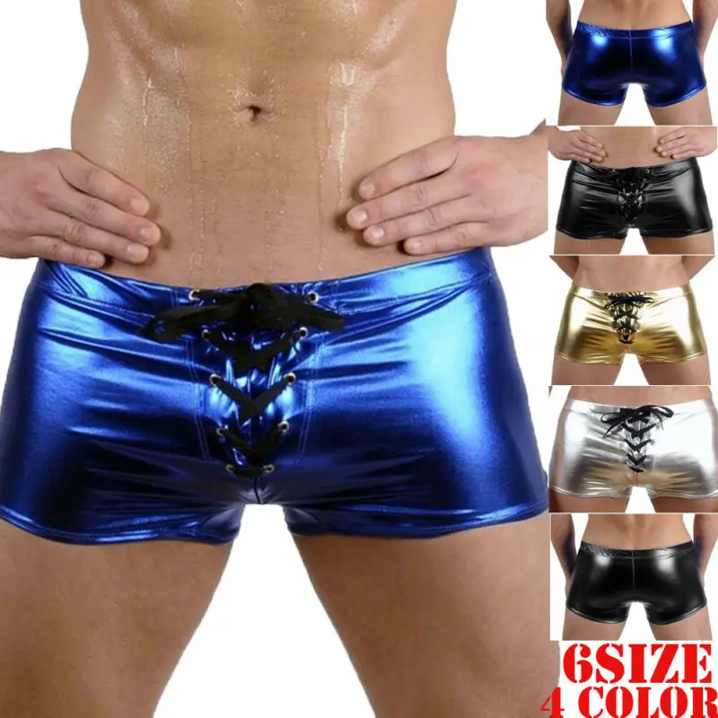 Для мужчин Эротические товары для секса из искусственной кожи с ремешками и трусы-боксеры нижнее белье Мокрые шорты эротические латекс клуб лакированная боксеры, мужское нижнее белье, трусы-боксеры с изображением