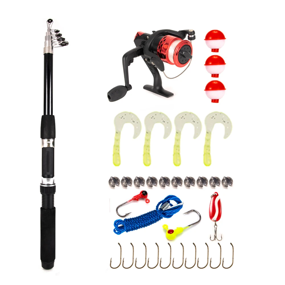 33 шт.компл. 1,8 м Удочка с прикормом набор рыболовных катушек мягкие приманки рыболовные крючки Рыболовная Снасть искусственные джиг воблеры приманка для рыбалки