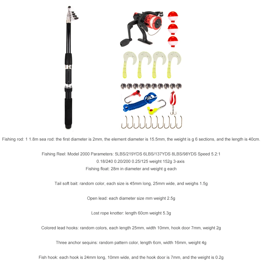 33 шт./набор комплект рыболовных принадлежностей Портативный 1,8 м для рыболовной удочки мягкие приманки крючок для рыболовной удочки