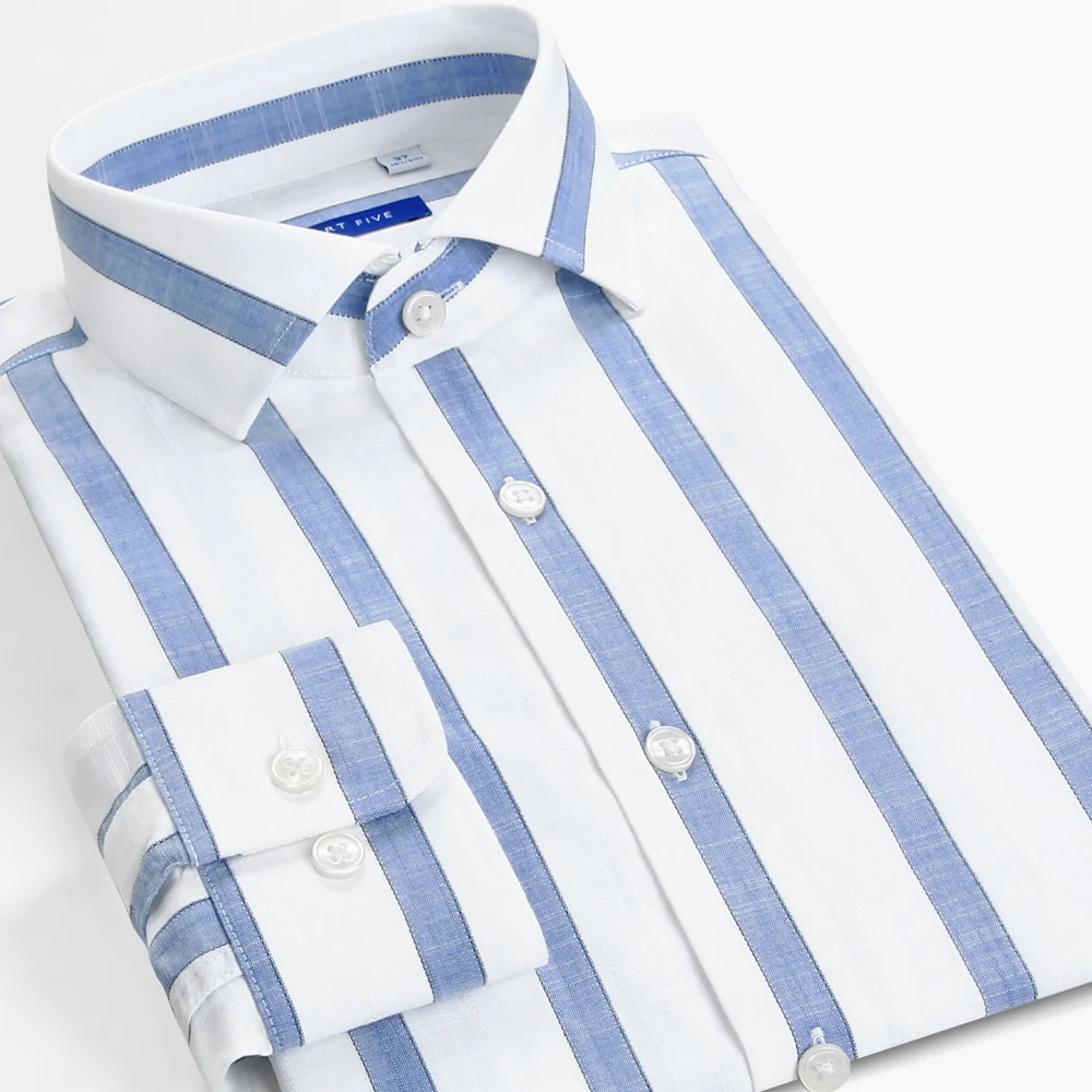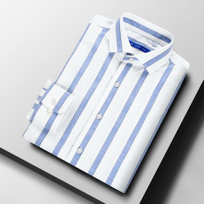 Smart Five, большие полосатые мужские рубашки, облегающие, с длинным рукавом, мужские рубашки с маленьким квадратным воротником, официальная одежда для офиса, размер 45 46