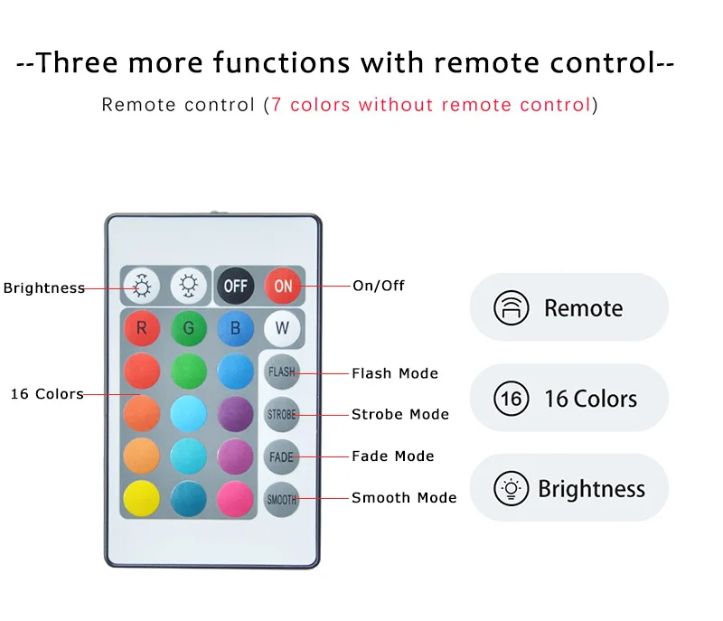 * 16 цветовых режимов с сенсорным кнопочным переключателем и пультом дистанционного управления.