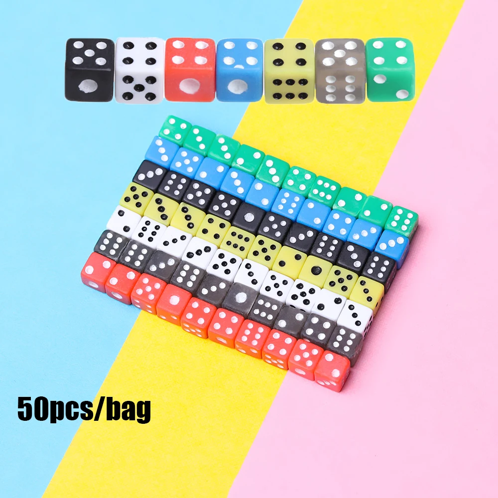 50 шт.пакет 6 сторонние портативные настольные игры игральные кости 5 мм акриловые Круглые Угловые вечерние цифровые кубики 7 цветов