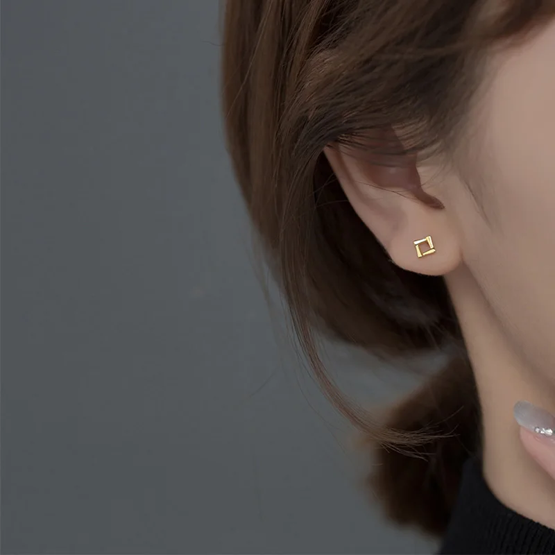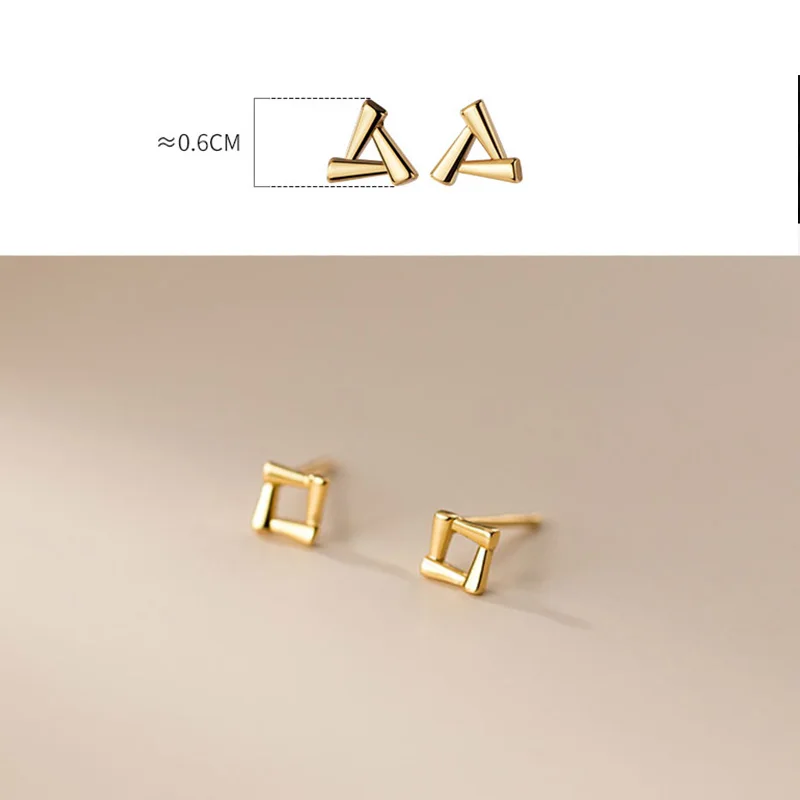 AIFENAO 925 стерлингового серебра маленький с геометрическими фигурами, треугольниками, квадратные серьги-гвоздики для женщин в Корейском стиле минимализма ушные украшения, маленькие подарки для девочек