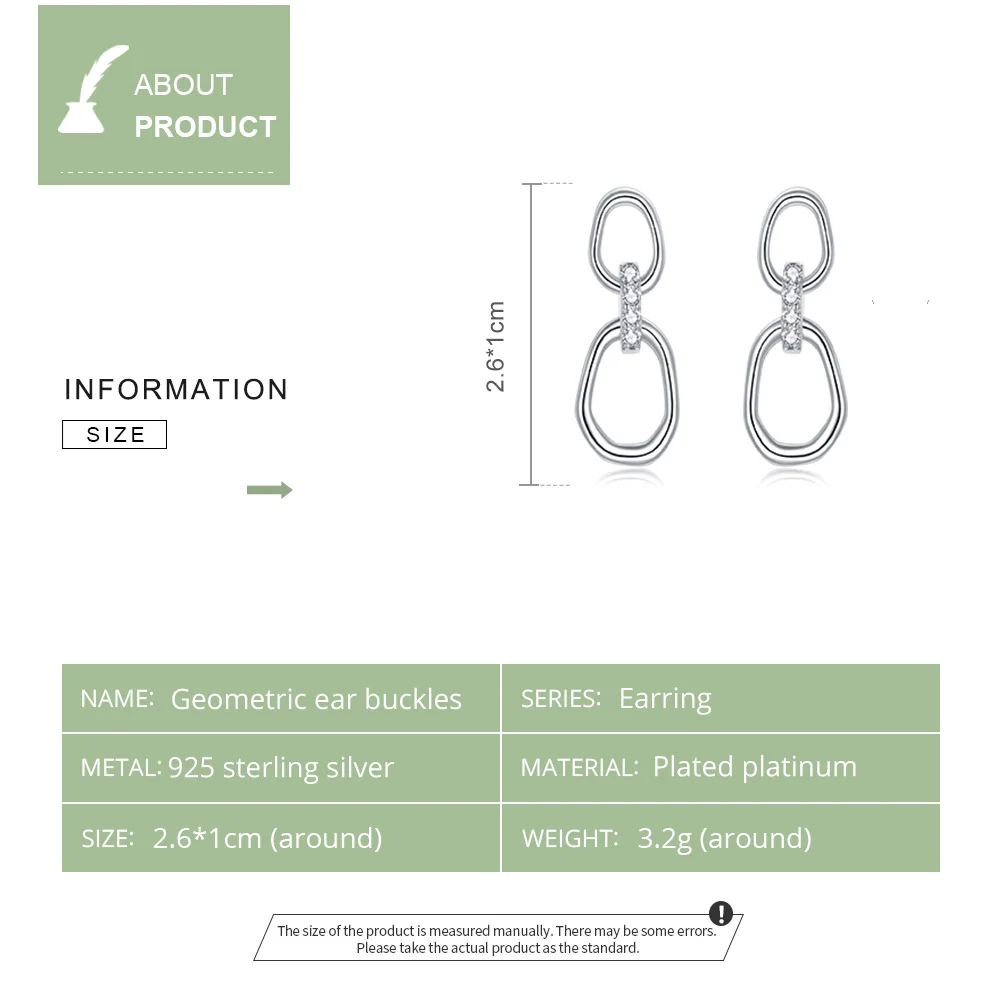 BAMOER серебро 925 ювелирные изделия, серьги с большими геометричес...