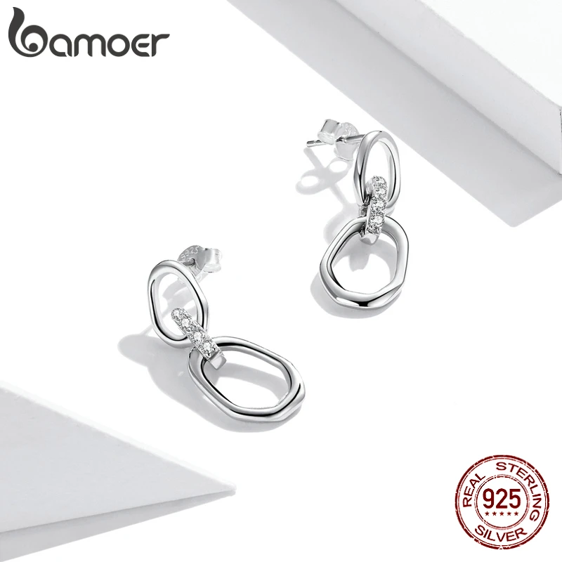 Bamoer подлинное серебро 925 пробы двойное кольцо пряжки для ушей к...
