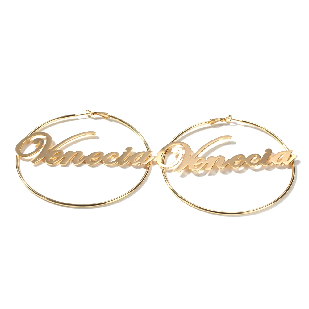 Серьги Bling King из нержавеющей стали с индивидуальным названием, изящные большие кольца с надписью, модные ювелирные украшения для женщин, 30-100 мм