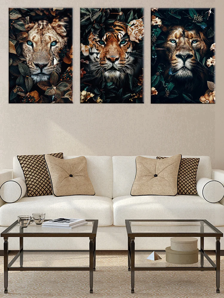 3 шт. HD животное холст живопись тропические стены Искусство Лев, тигр и леопард пейзаж постеры домашний Декор Рамка