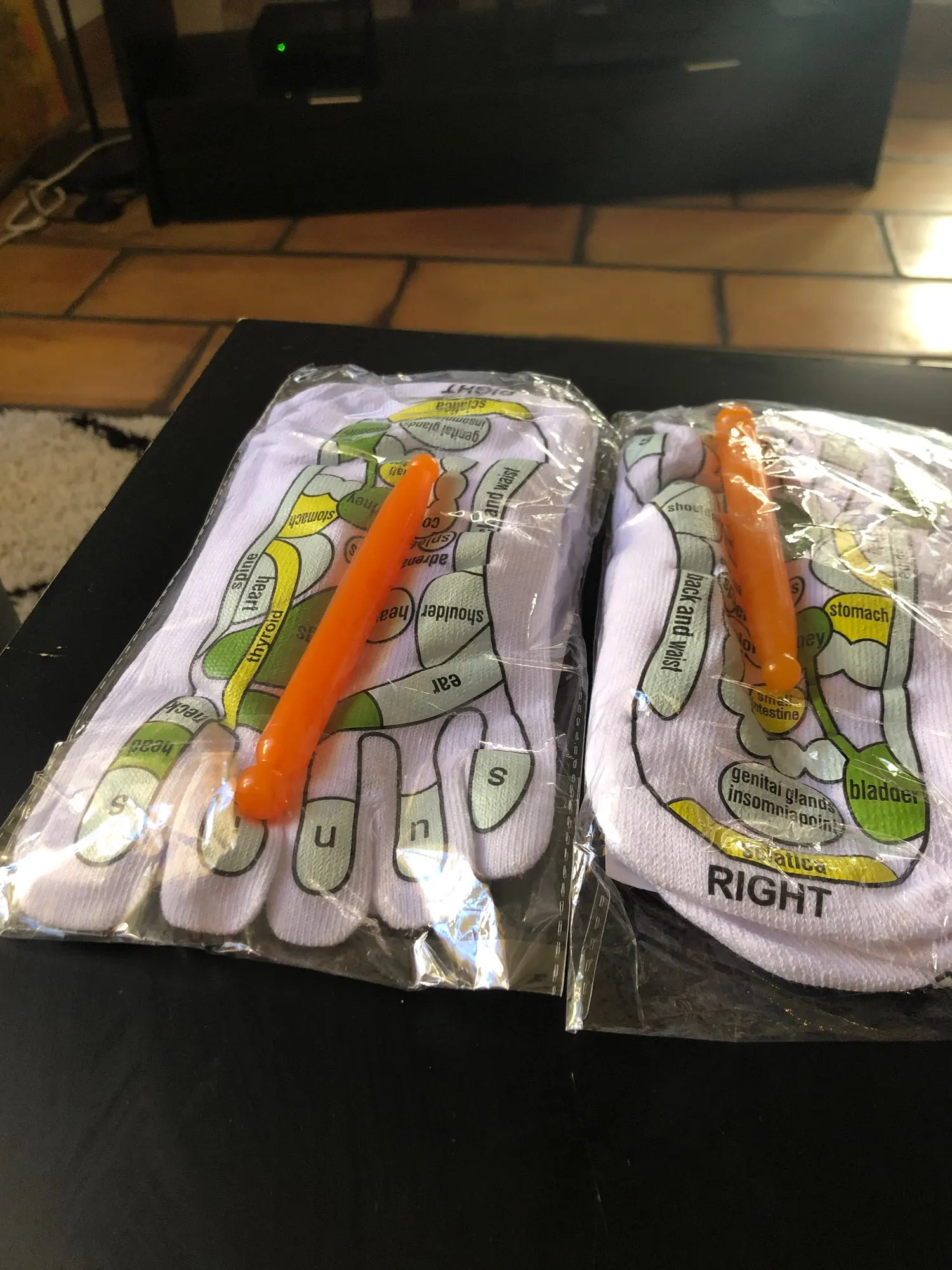 носки подходят на 41 размер, в комплекте есть пластиковая палочка для акупрессуры. доставка ДПД, в срок