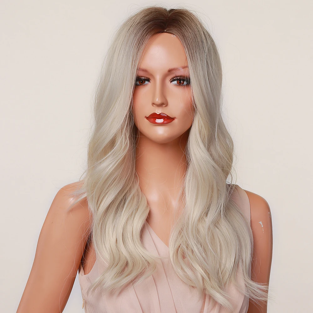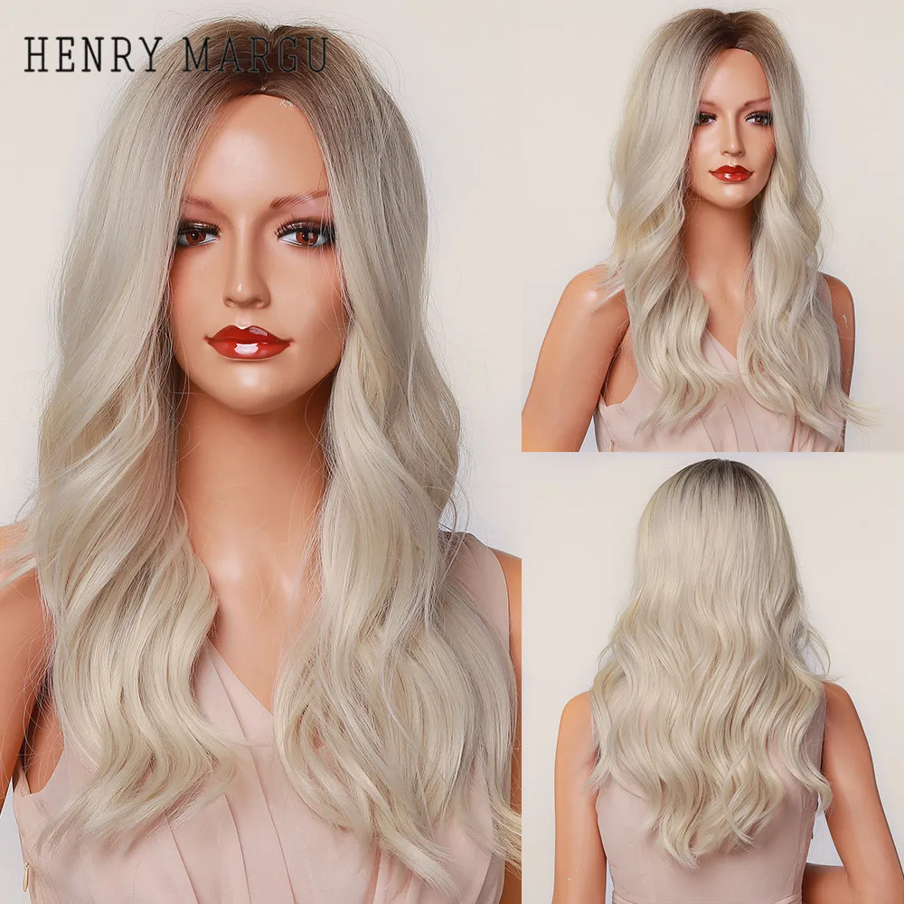 Длинные парики HENRY MARGU, коричневые, Платиновые, светлые парики, средняя часть, волнистые, синтетические парики для женщин, термостойкие, вечерние, Косплей парики