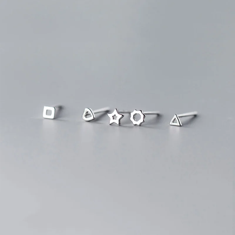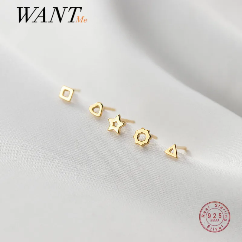 Женские маленькие серьги-гвоздики WANTME, минималистичные геометрические маленькие серьги из стерлингового серебра 925 пробы с любовью и звездой, корейские очаровательные ювелирные украшения для девочек-подростков
