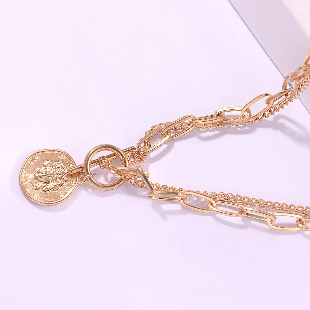 Ladies Love Цепочки и ожерелья Ретро металлическая Крупногабаритные Многослойные круглый Цепочки и ожерелья Творческий Монета металлический Цепочки и ожерелья для женщин, ювелирное изделие, подарок цепочка X5