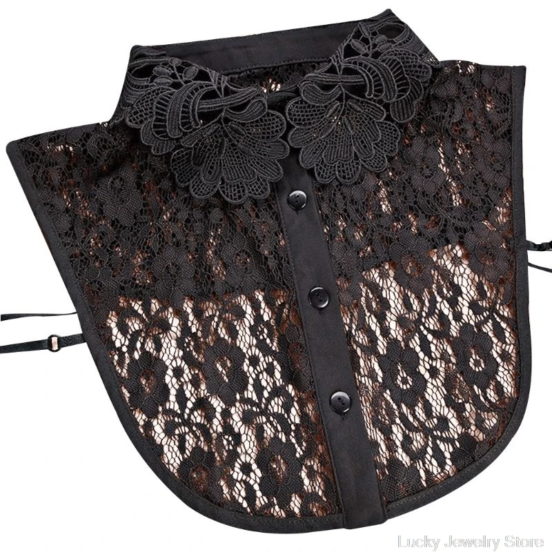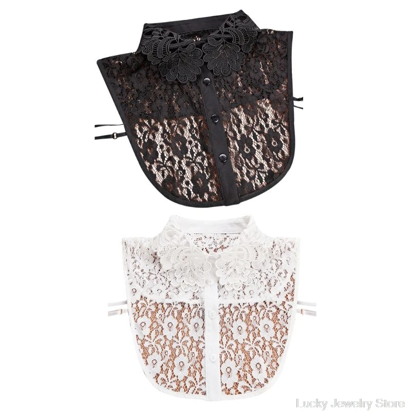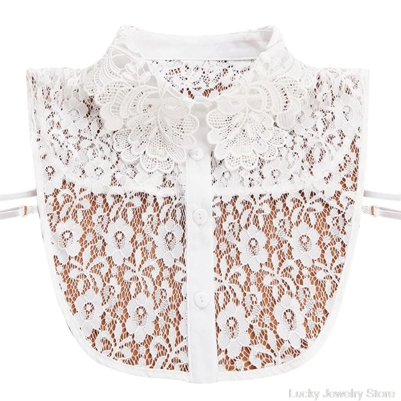 Женская блузка, свитер с круглым вырезом, ложный воротник, съемная прозрачная вышитая Цветочная кружевная однотонная полурубашка, одежда с завязкой на пуговицах