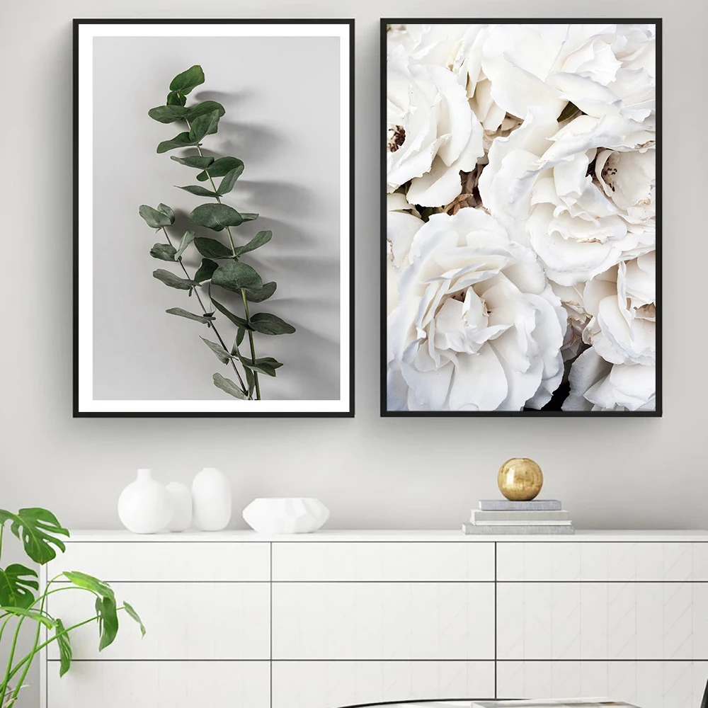 Плакат на холсте с изображением черно-белых цветов, современные пла...