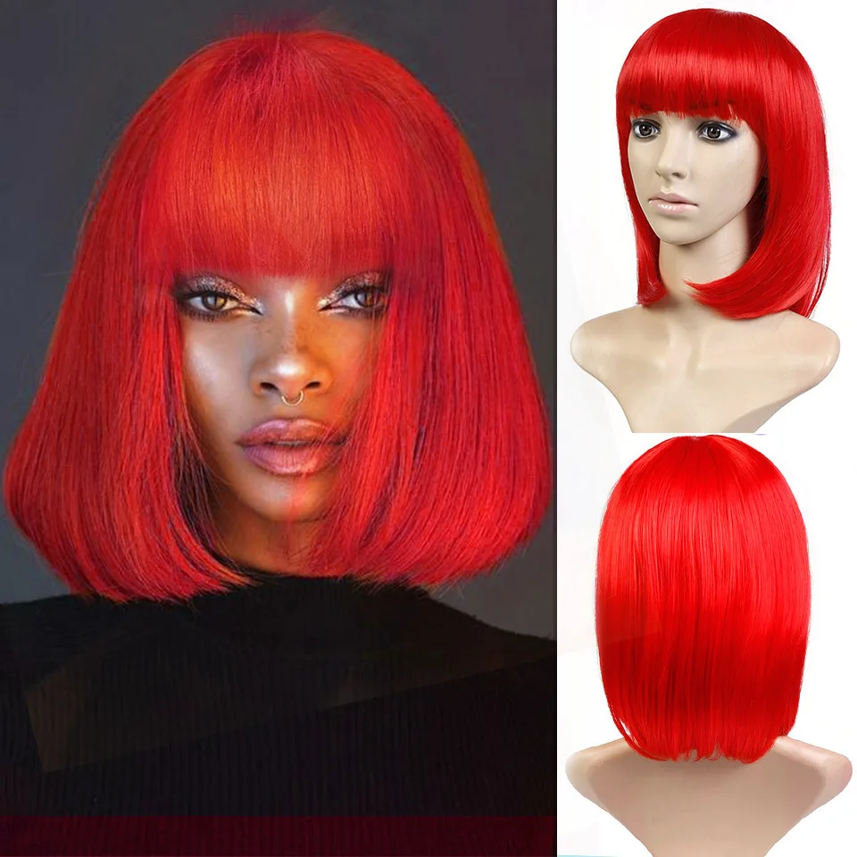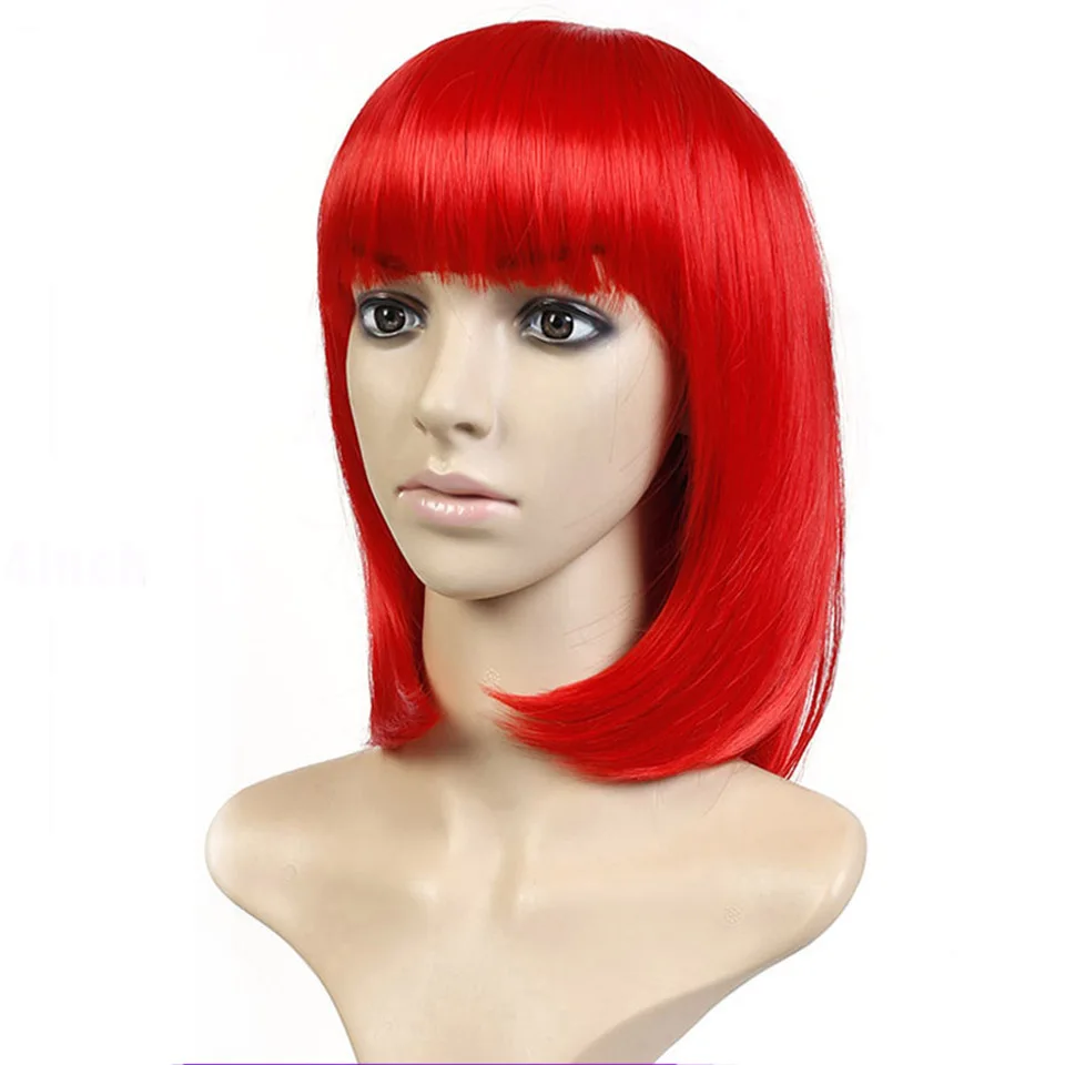 HOUYAN короткие прямые волосы челки синтетический парик термостойкий красный черный коричневый синий Вечеринка косплей для девочек