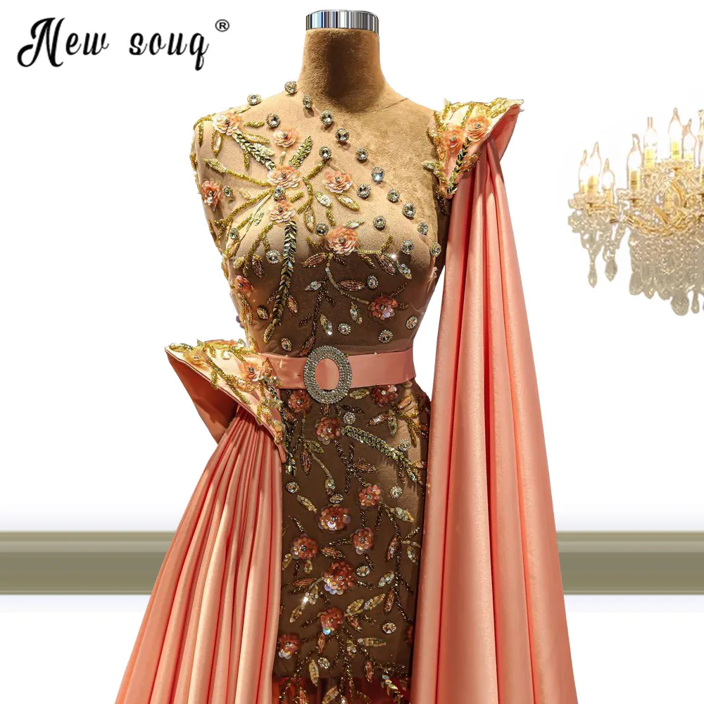 Арабское блестящее вечернее платье на одно плечо с накидкой и длинными рукавами в Дубае, женские свадебные вечерние платья элегантного размера плюс