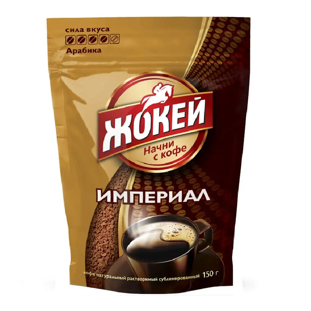 Растворимый кофе Жокей Империал, созданный из отборных зерен арабики методом темной обжарки, обладает крепким приятным вкусом и тонким ароматом. Для кофе Жокей Империал используются зерна арабики, выращенные на уникальных плантациях в долинах древних Анд.