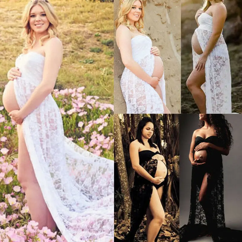 Сексуальное кружевное платье макси для беременных женщин с разрезом...