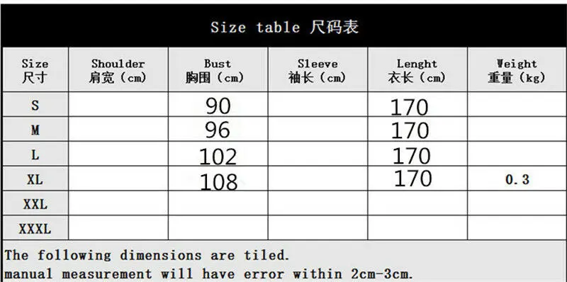 Таблица размеров: возможны отклонения в 1-2 см из-за ручного измерения, спасибо (все измерения в см, обратите внимание, что 1 см = 0,39 дюйма)