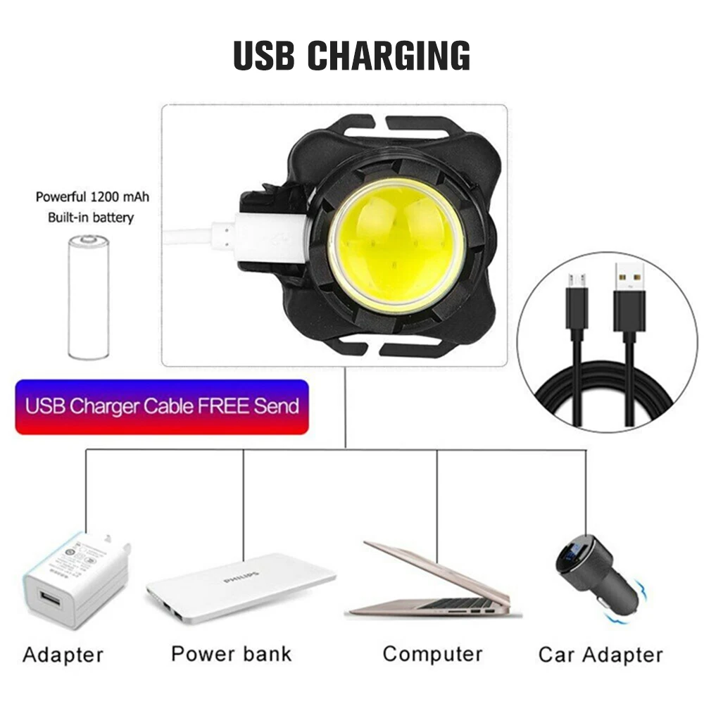 Перезаряжаемый через USB переносная Рабочая Лампа COB светодиодный фсветильник рь, водонепроницаемый Головной фонарь для пеших прогулок, кемпинга, ночного велоспорта, рыбалки, поиска
