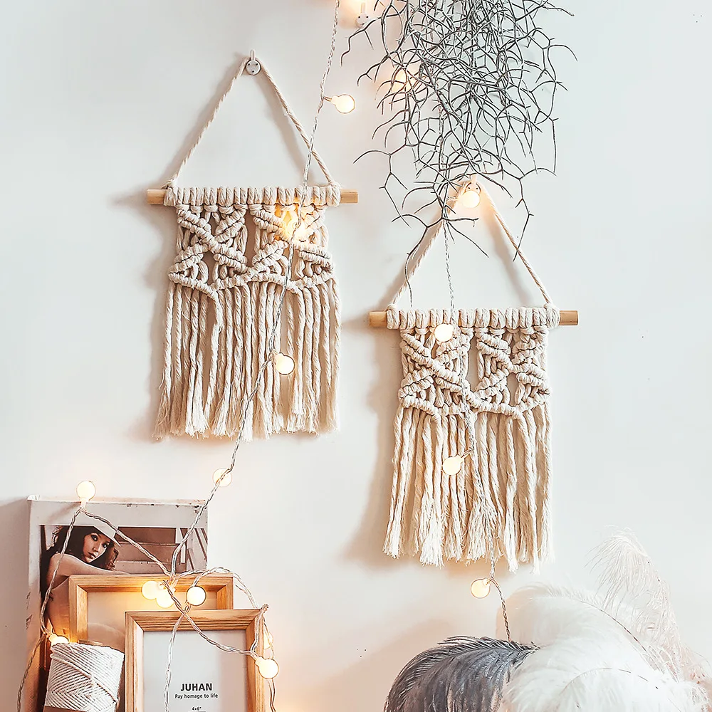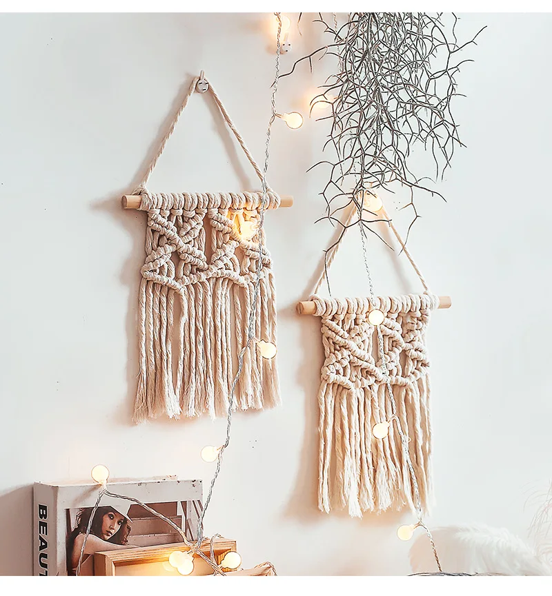 Скандинавский кружевной гобелен ручной работы, богемное настенное плетение, украшение для дома, спальни, детской комнаты, настенная подвеска с кисточкой