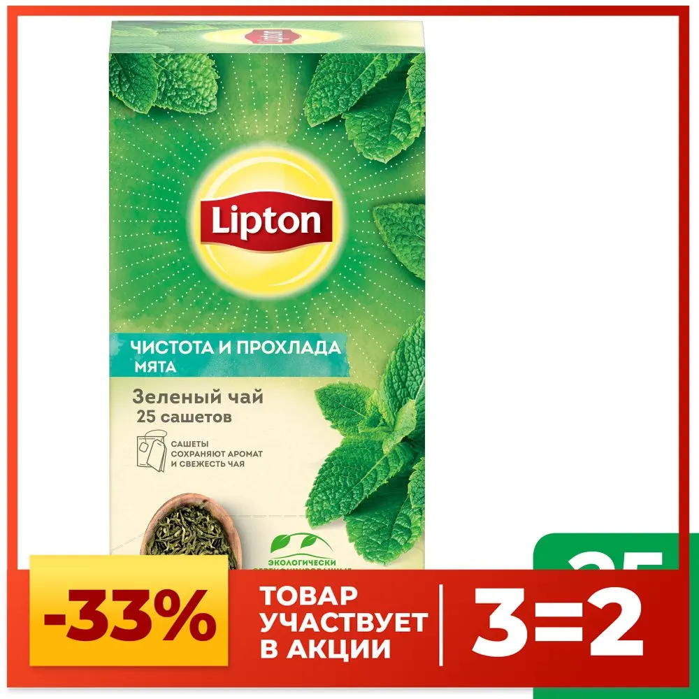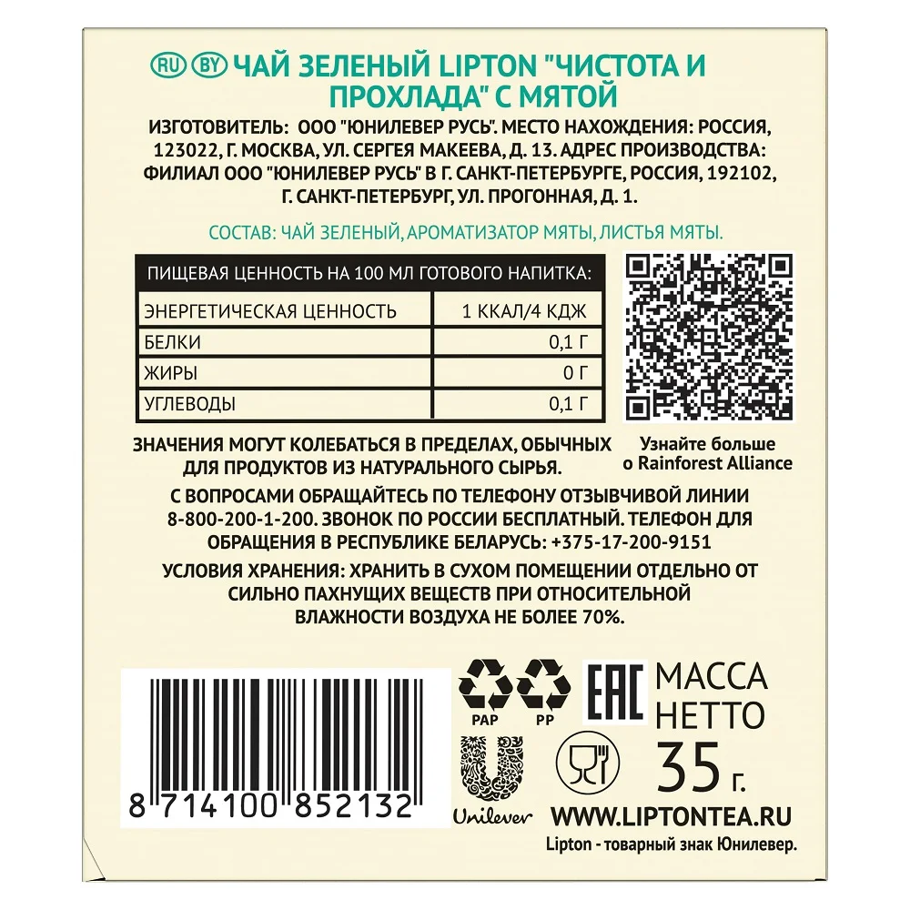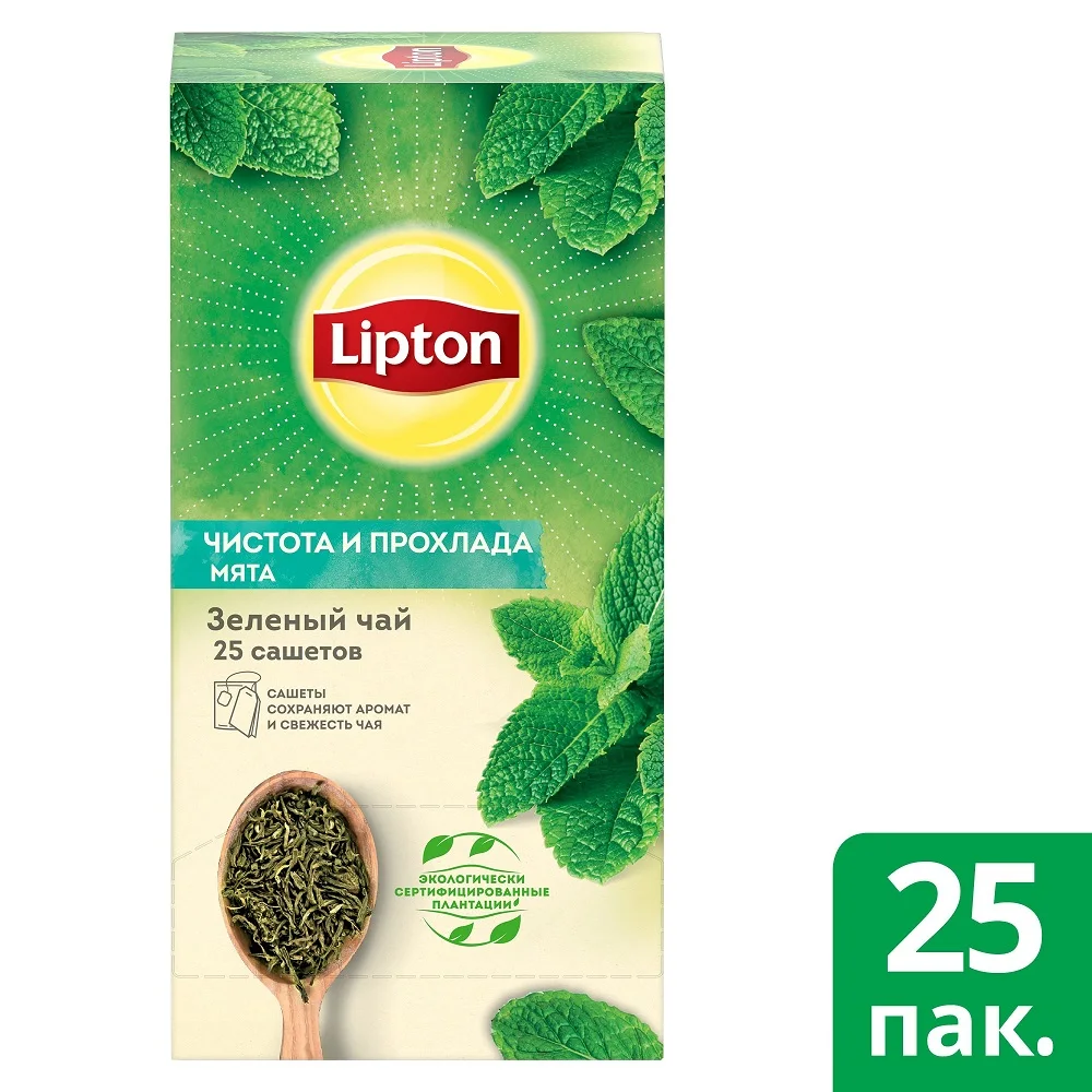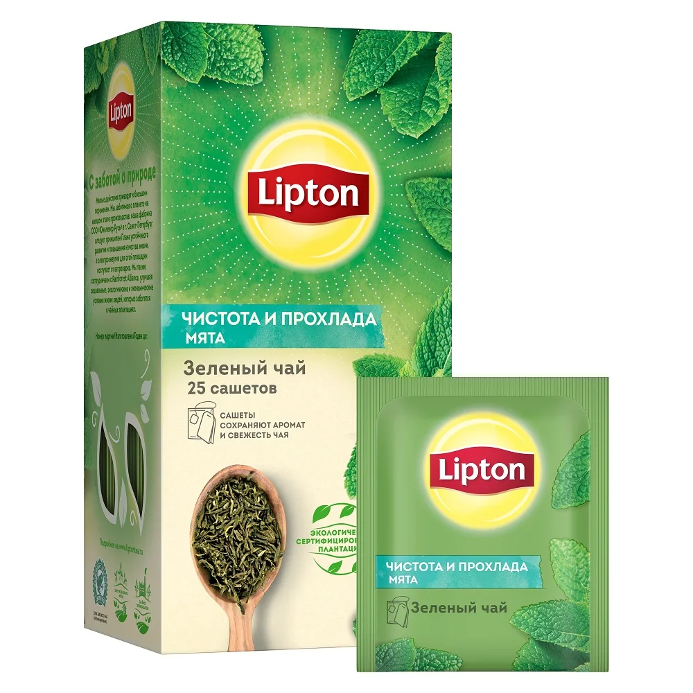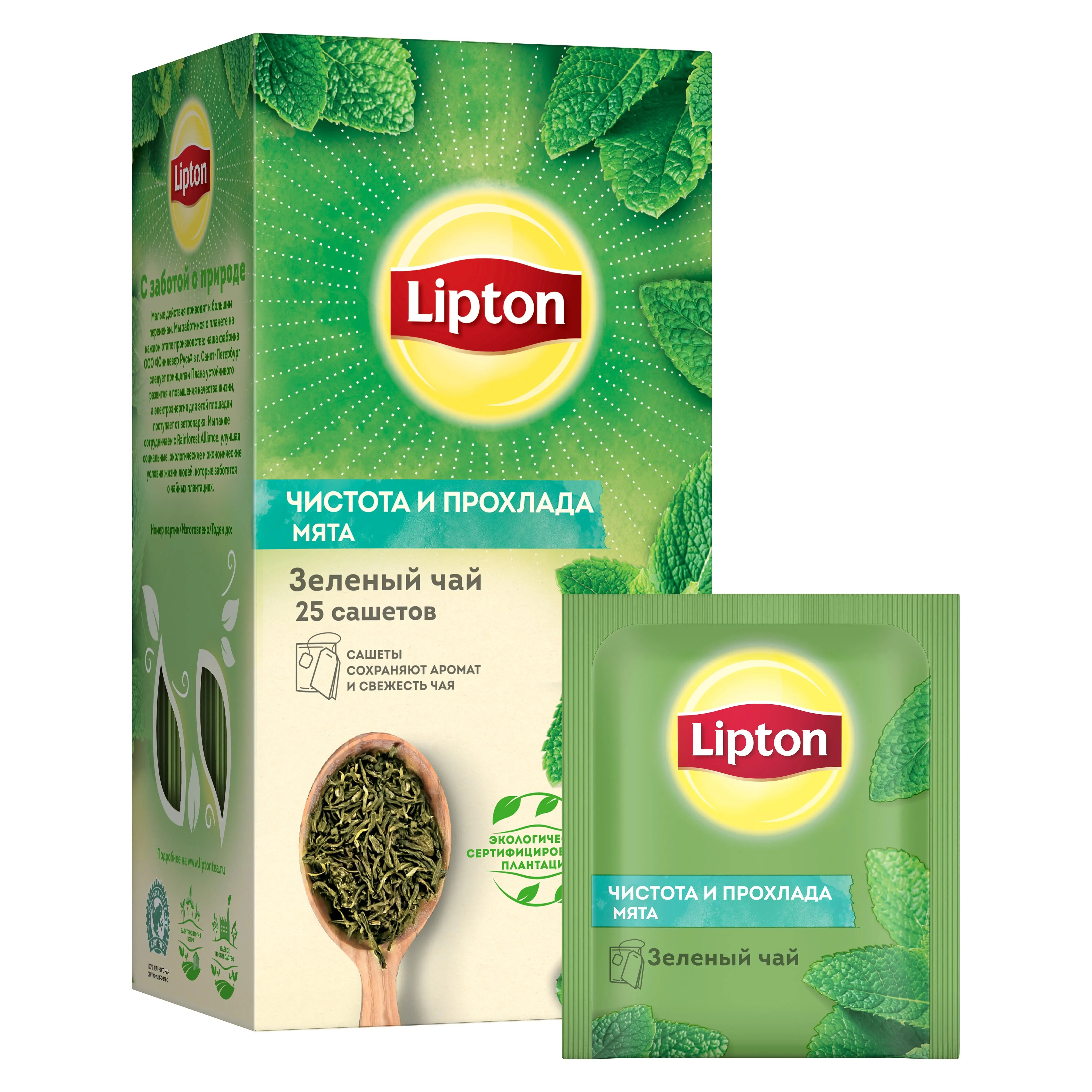 Зеленый чай Lipton Чистота и Прохлада, с мятой, 25 пакетиков