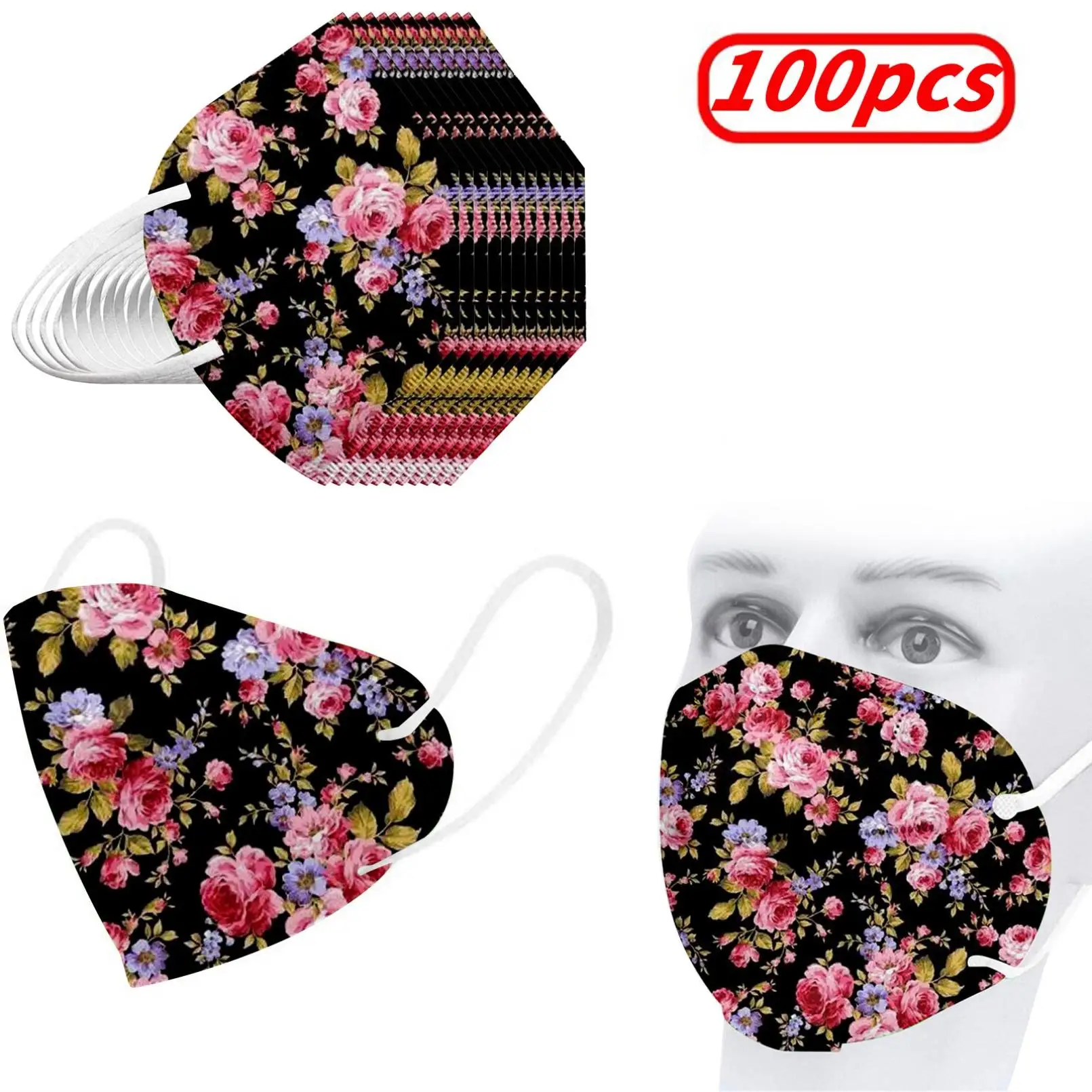 Маска для лица KN95 с цветочным принтом, одноразовая, 5 слоев, Пыле...