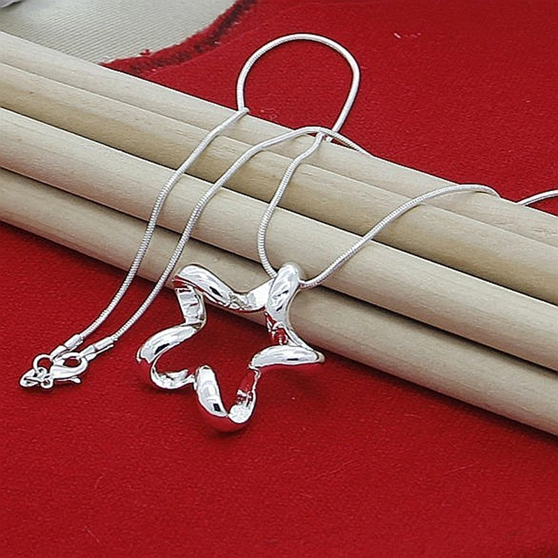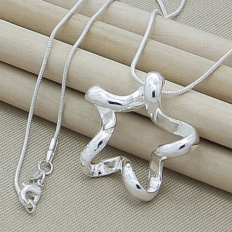 925 стерлингового серебра Большой пятиконечная звезда, подвеска, колье для женщин, Настоящее Простые Модные ювелирные изделия Змея цепи ожерелье