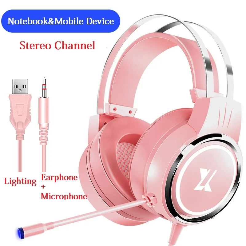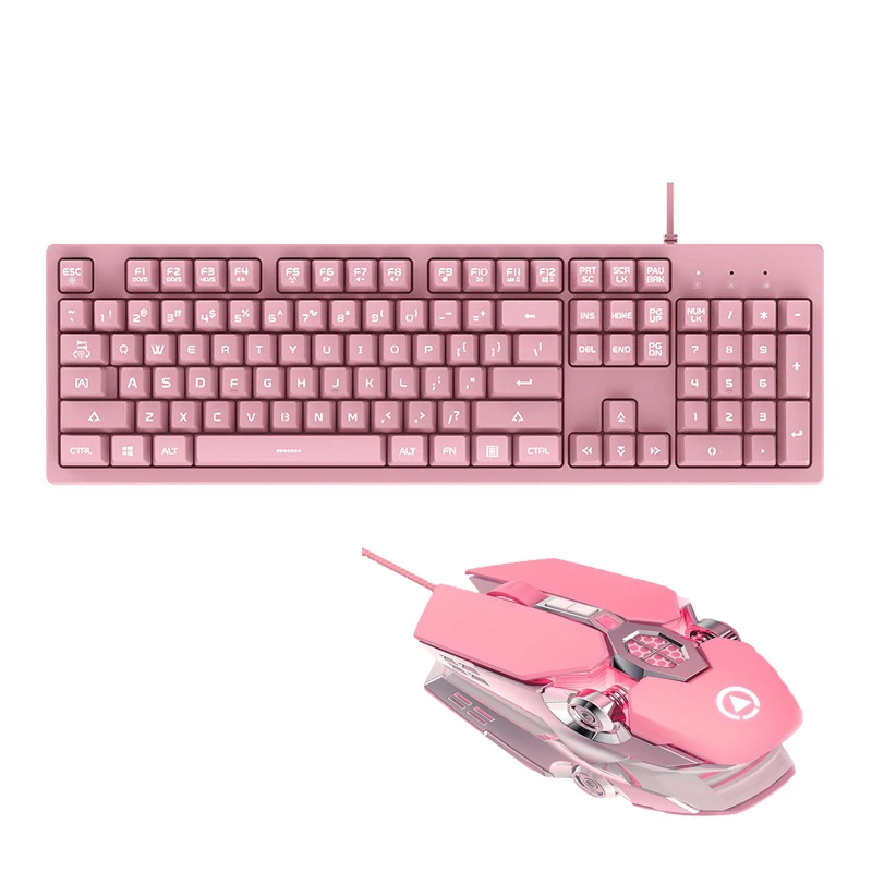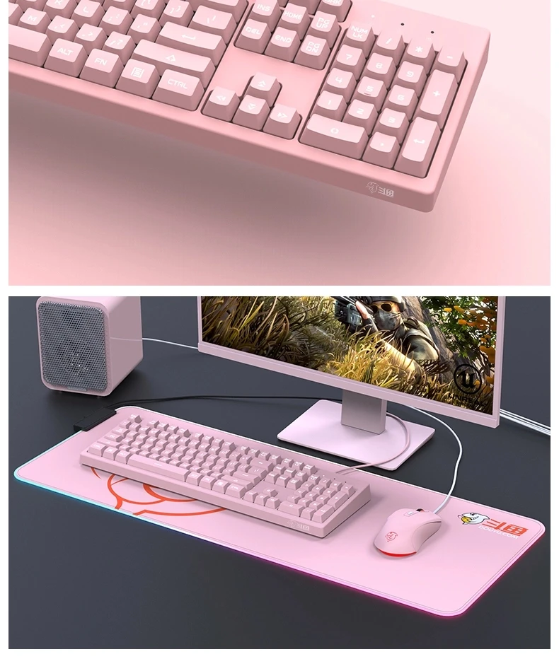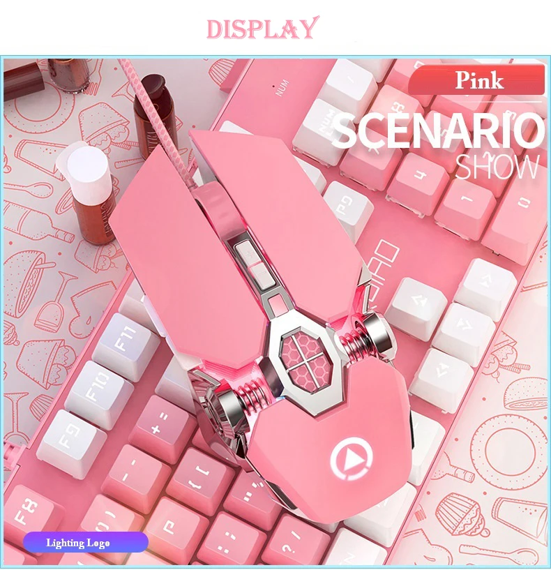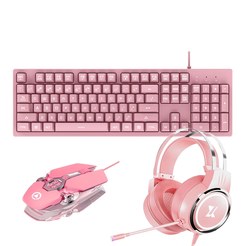 3 в 1 Клавиатура Наушники в форме мыши игровые комбо 104 клавиши Проводная розовая клавиатура белая подсветка 3200DPI Мышь Setro наушники микрофон