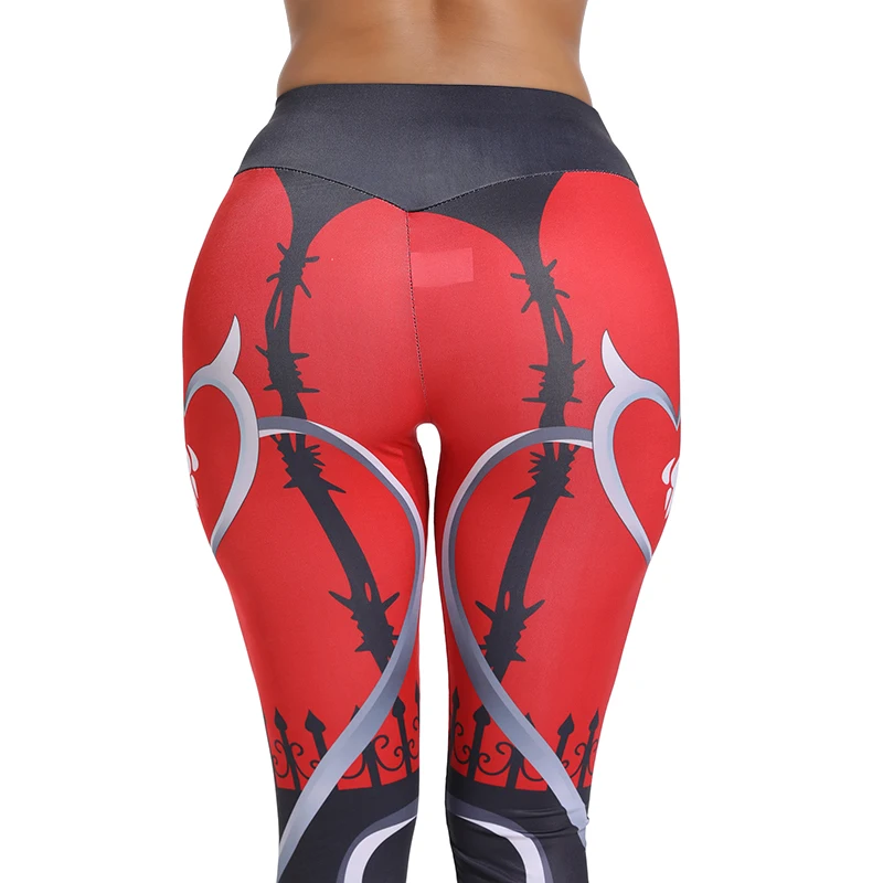 Женские спортивные Леггинсы с принтом сердца, эластичные штаны для фитнеса, тренажерного зала, быстросохнущие спортивные дышащие штаны для бега, новинка