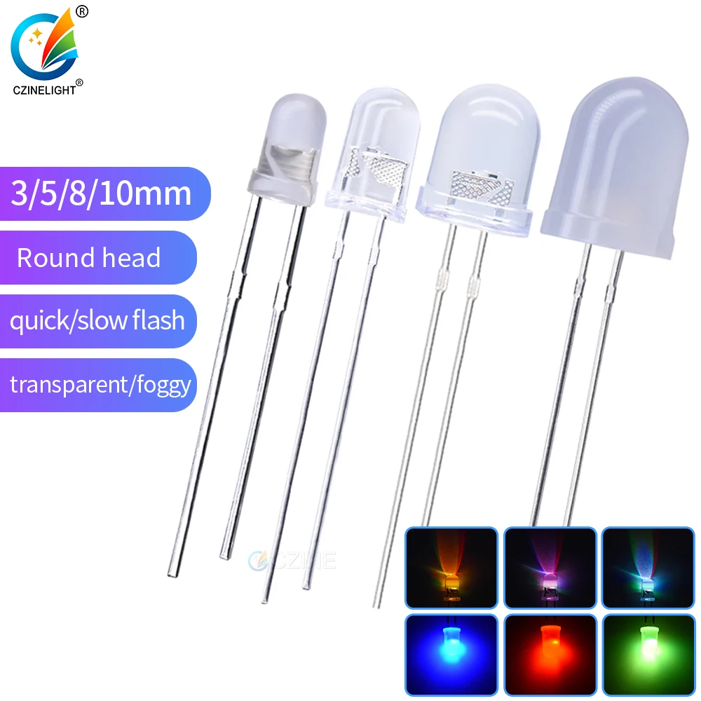 1000 шт.пакет 3 мм 5 мм 8 мм 10 мм Rgb 2 контакта регулятор скорости "быстро-медленно" мигающий круглый прозрачный диод с рассеянным полноцветным светодиодом