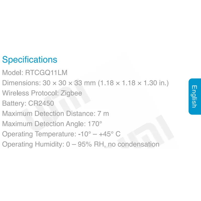 Работает с другими смарт-устройствами mijia / aqaraИнтеллигентая (ый) индукции: когда кто-то проходит, ночной Светильник включится автоматическиПочувствуйте легкость и темность вашей комнатыФункция уведомления: отправлено оповещение вам через приложениеБеспроводное соединение ZigBeeВстроенный 1 шт. CR2450 аккумуляторРасстояние обнаружения: 7 мУгол обнаружения: 170 градусовРабочая температура: -10 - 45 градусов по ЦельсиюРабочая влажность: 0 - 95pct RHБренд: aqaraМодель: умный домМатериал: пластикПосылка Вес: 0,079 кгРазмер изделия (Д х Ш х В): 3,00x3,00x3,30 см/1,18x1,18x1,3 дюйм (ов)Размер посылка (Д x Ш x В): 10,00x6,60x3,30 см/3,94x2,6x1,3 дюймовПосылка: 1 датчик человеческого тела Aqara (с держателем)