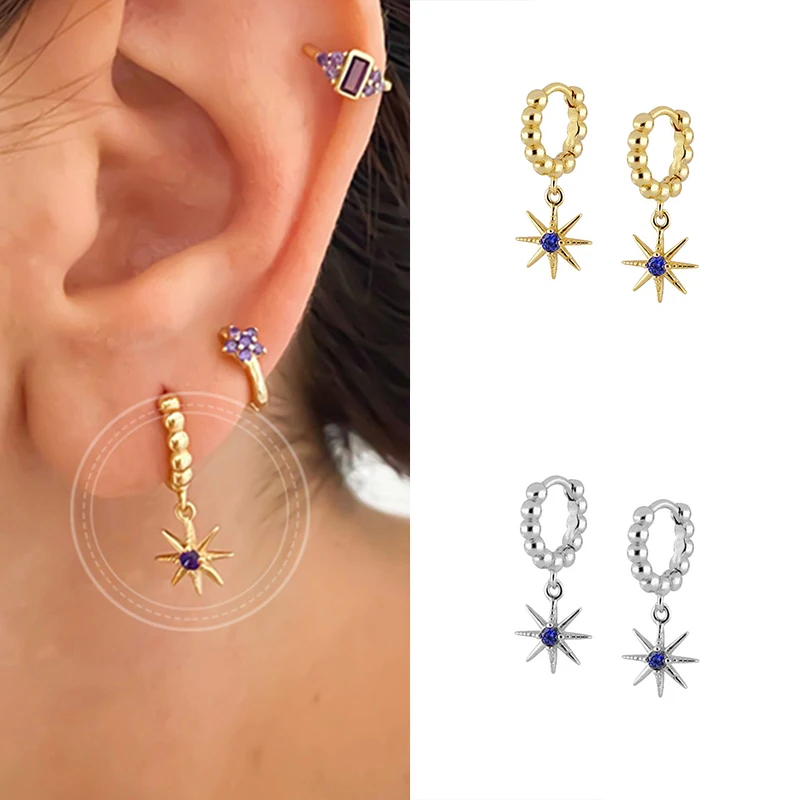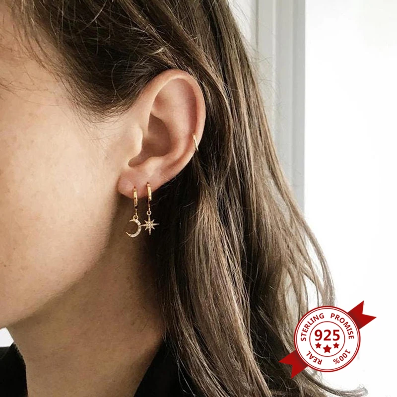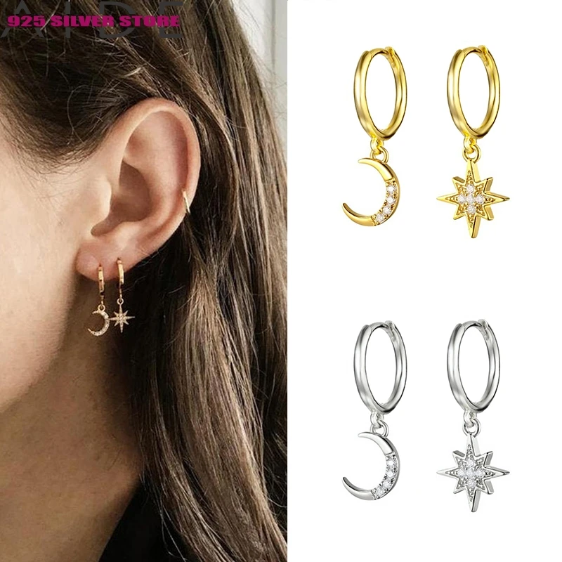 Aide 1 пара Циркон Huggies Серьга в форме звезды висячие серьги-кольца в виде капель с кристаллами в форме Для женщин 925 пробы серебро Pendientes плата 925 Пирсинг
