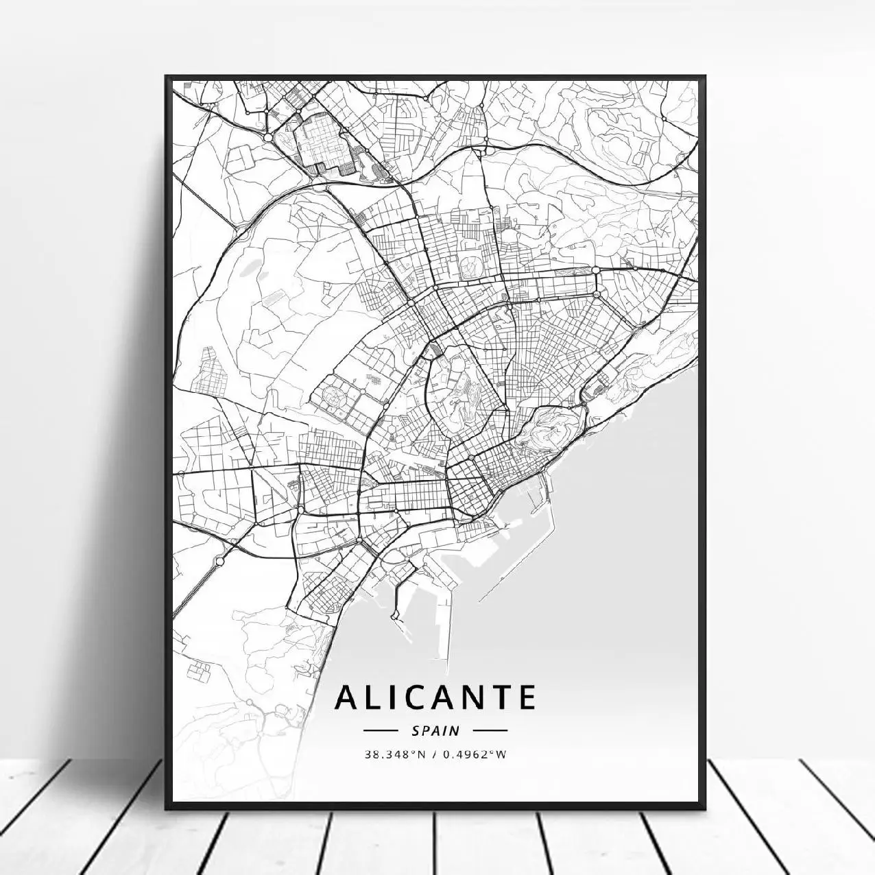 Черно-белый холщовый постер с принтом карты города стальбум, Соврем...