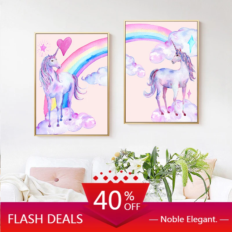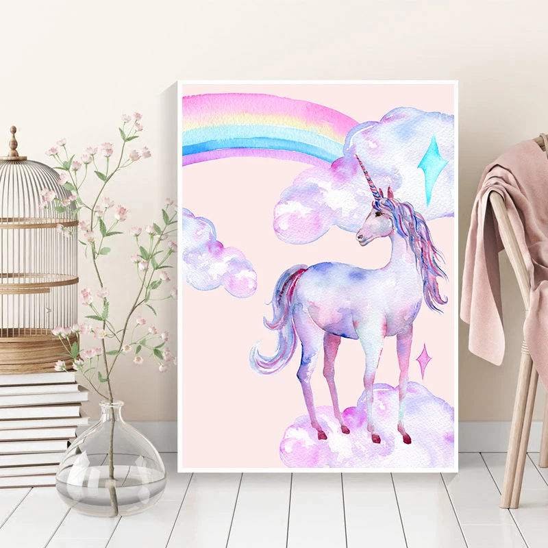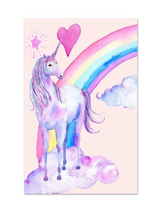Рождественская Аниме Холст Картина Радуга постеры с единорогом и декоративное настенное Искусство Рисунок домашний декор изображение Стиль детские украшения